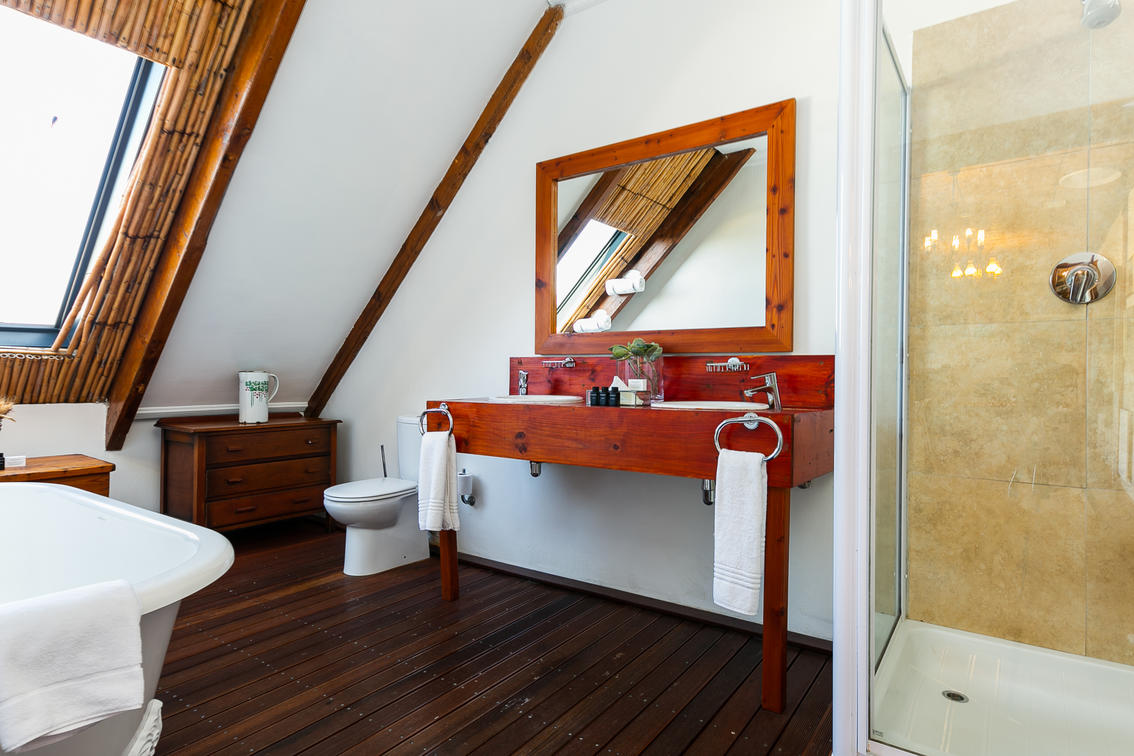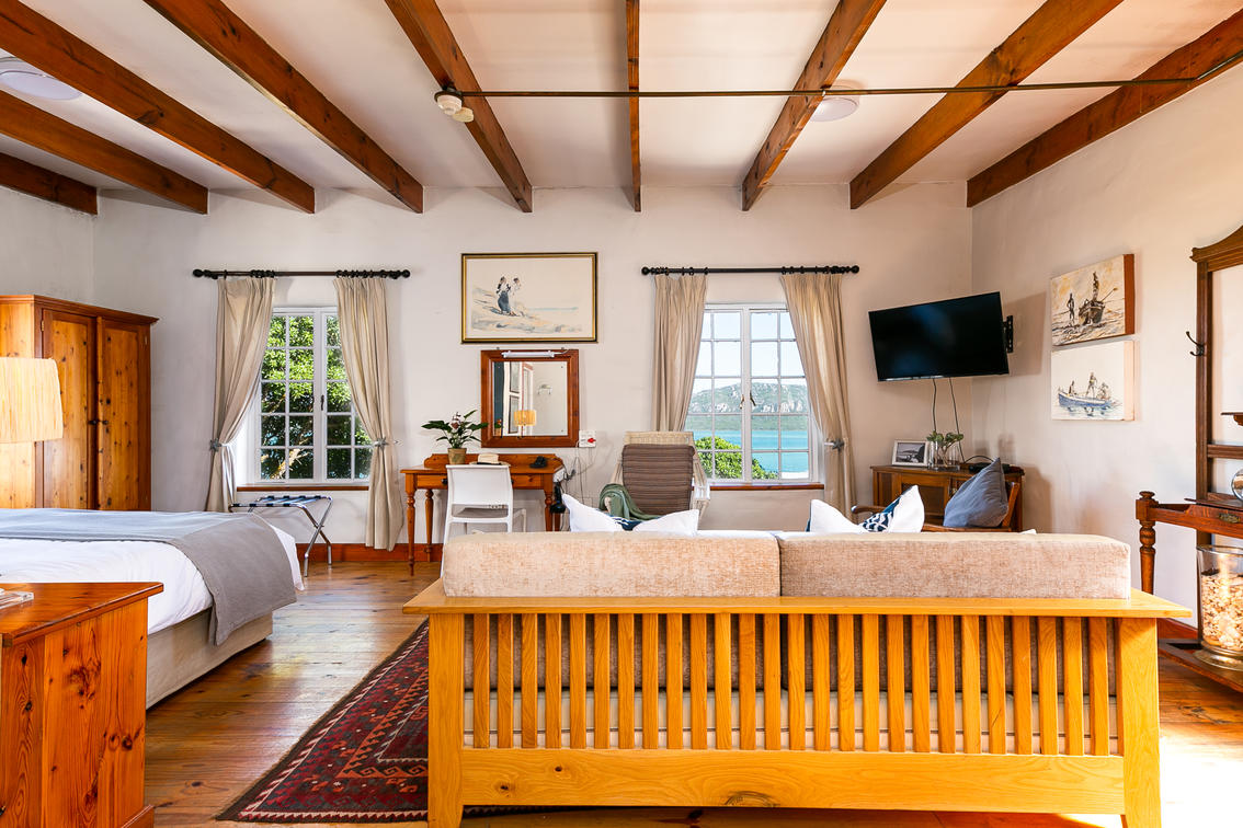 The Farmstead has 2 bedrooms and is situated in the original farmstead building. The main bedroom has a King size bed and the second bedroom sleeps 3 people on single beds. The bathroom has a separate shower and bath, while the generously sized lounge area has sweeping views of the lagoon. The Farmstead can accommodate 5 persons.