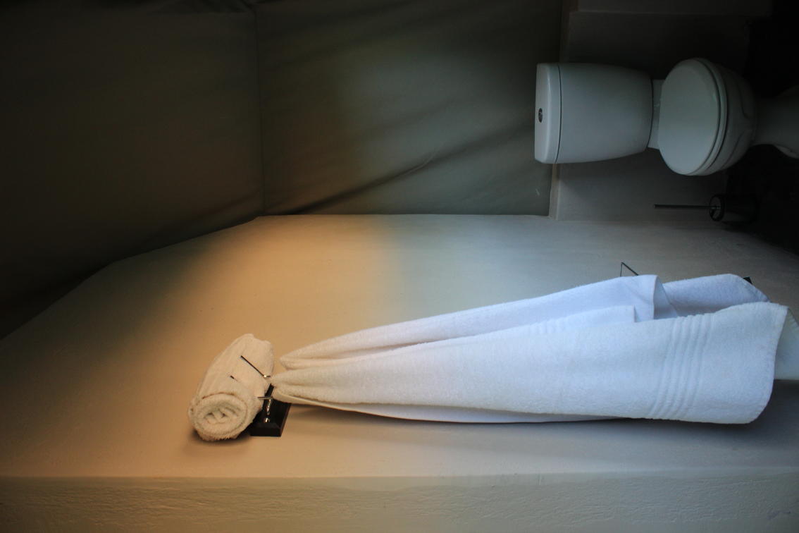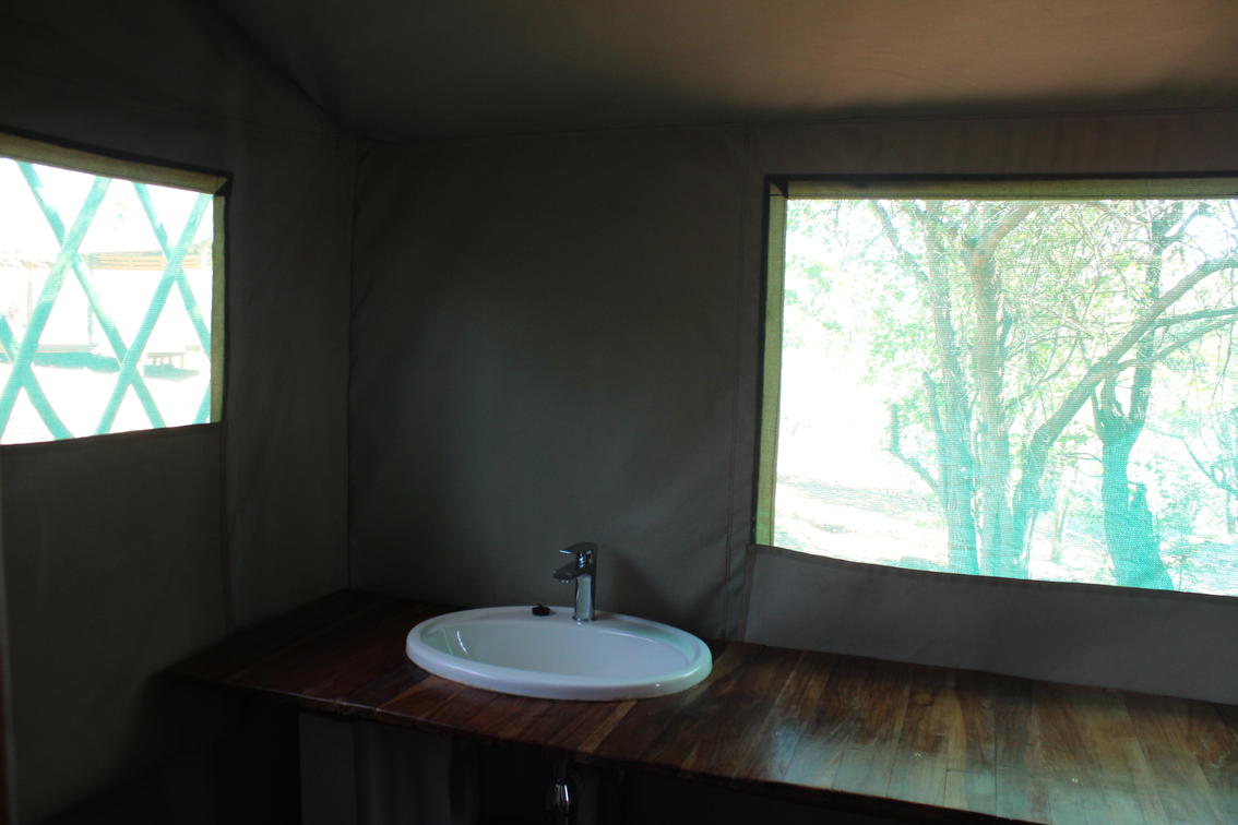 Safari tent with en-suite. Tents have limited electricity with solar heated water, linen and towels.