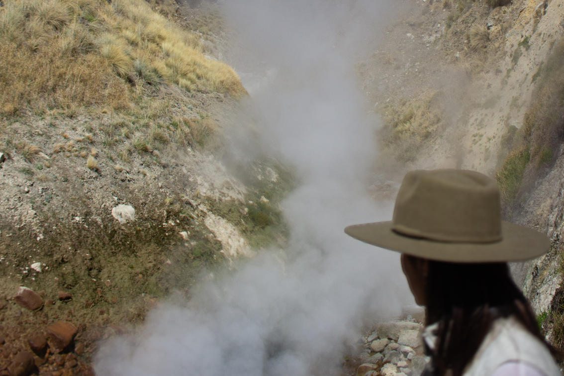 de mula —único medio capaz de abrirse paso hasta estas alturas sin camino— rumbo a un mundo volcánico donde géiseres humeantes,
