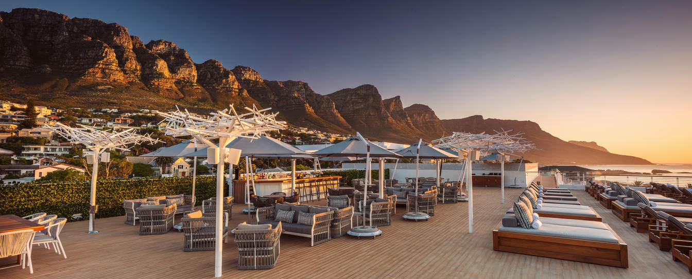Our rooftop bar & lounge is open plan with a 270ยบ view over the iconic Camps Bay beach, backed by the 12 Apostles mountain range.
