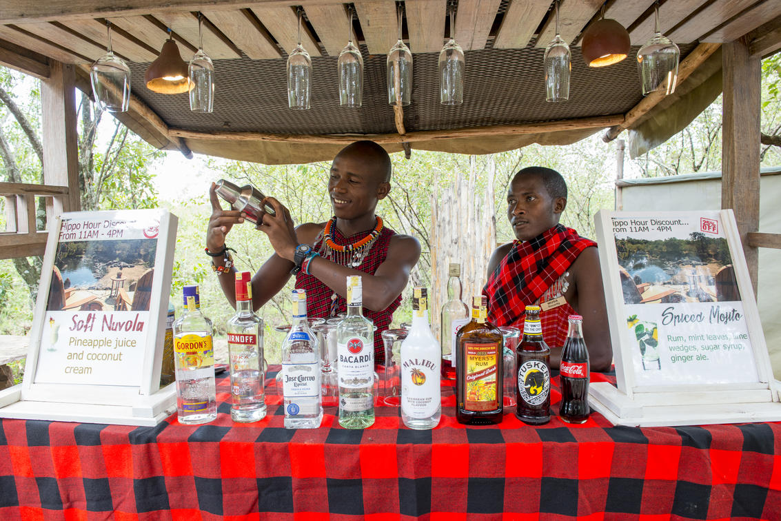 Enjoy your drinks while watching the beautiful scenery and hippos lazing around.