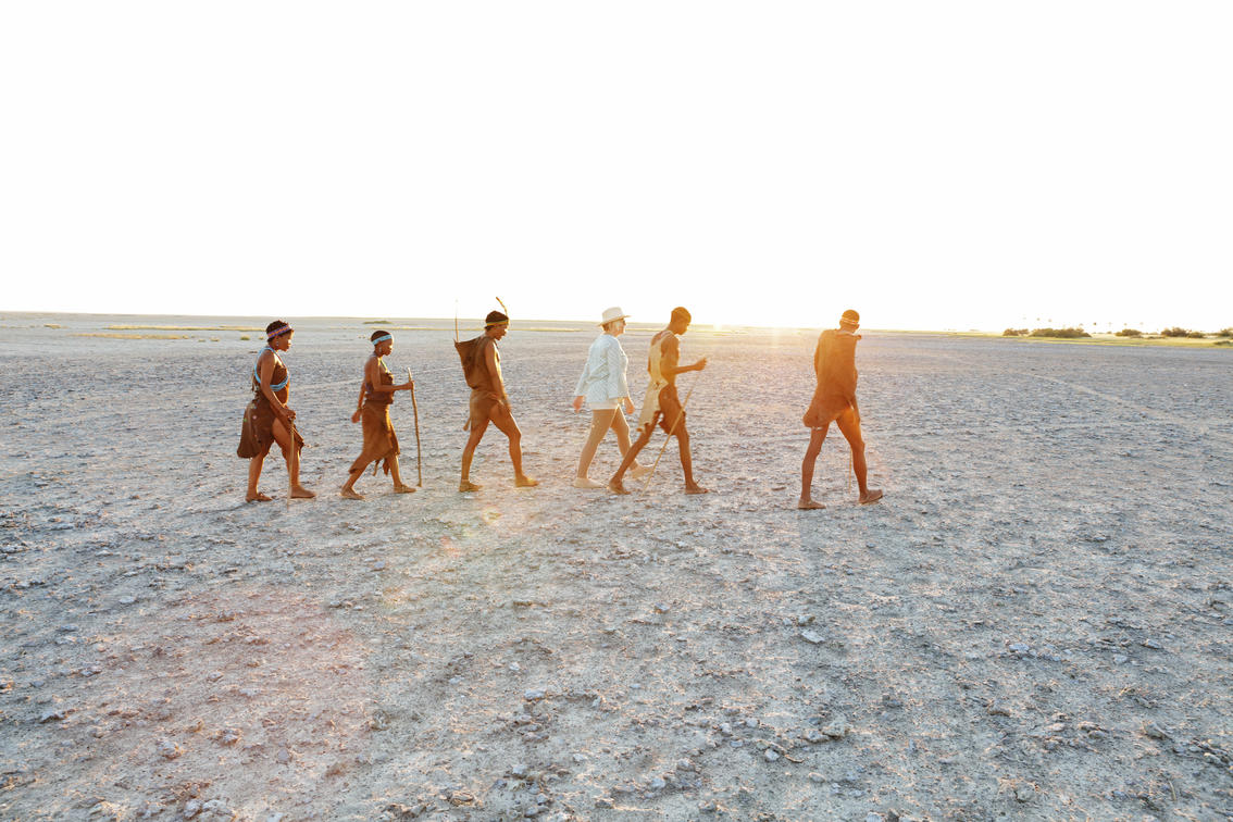 Discover the secrets of the pans with the Zu/’hoasi Bushmen on a fascinating bush walk. See this ancient desert landscape through their eyes. These skilled hunter gatherers will show you how to survive, using their extraordinary tracking skills to uncover a smorgasbord of culinary delights... from bulbs, to scorpions, to berries. Spending time with them is a very rare privilege.