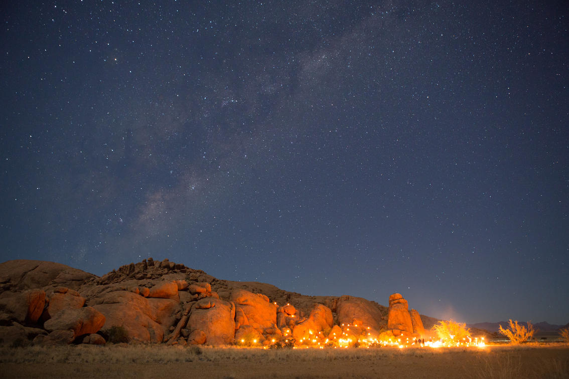 Shortly after sunset we depart on a brief drive on our private reserve to a secret location where you will enjoy a full dinner buffet served under the Namibian star studded skies!