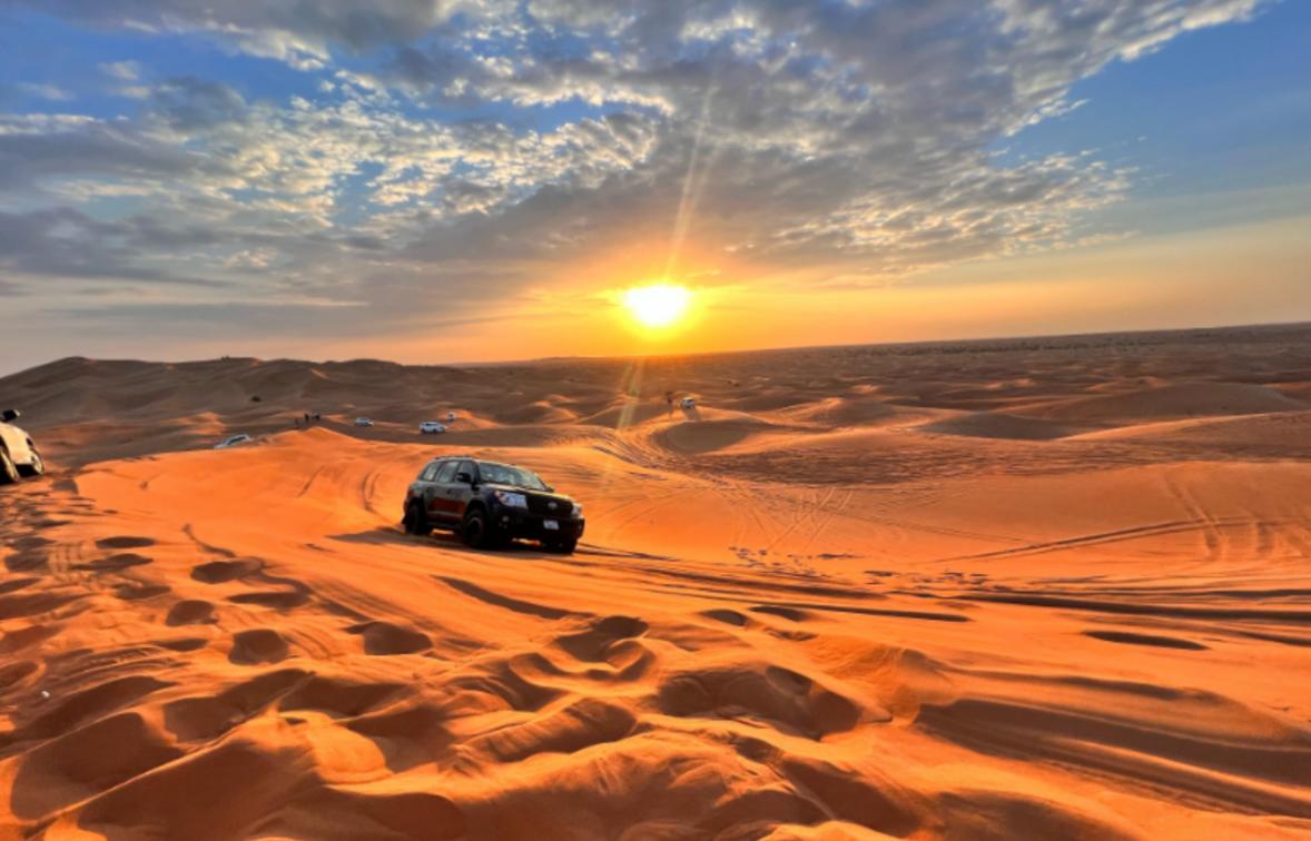 Embark on a Morning Desert Safari in Dubai and seize the day with an array of exhilarating activities. The adventure begins at 8 am with a convenient pick-up from travellers residence in Dubai or Sharjah. Aboard a robust 4x4 Land Cruiser, travellers will be whisked away for a 4-hour tour filled with excitement. As the sun rises, painting the dunes with vibrant hues, they will experience the thrill of dune bashing, where the skilled drivers masterfully steer through the desert’s challenges. Next, sandboarding awaits, offering a rush as travellers surf the sandy waves. The journey wouldn’t be complete without a camel ride, a serene encounter that connects travellers with the timeless spirit of the desert. With cold water provided and a return trip, this tour promises a morning of unforgettable memories and the essence of Dubai’s natural beauty.