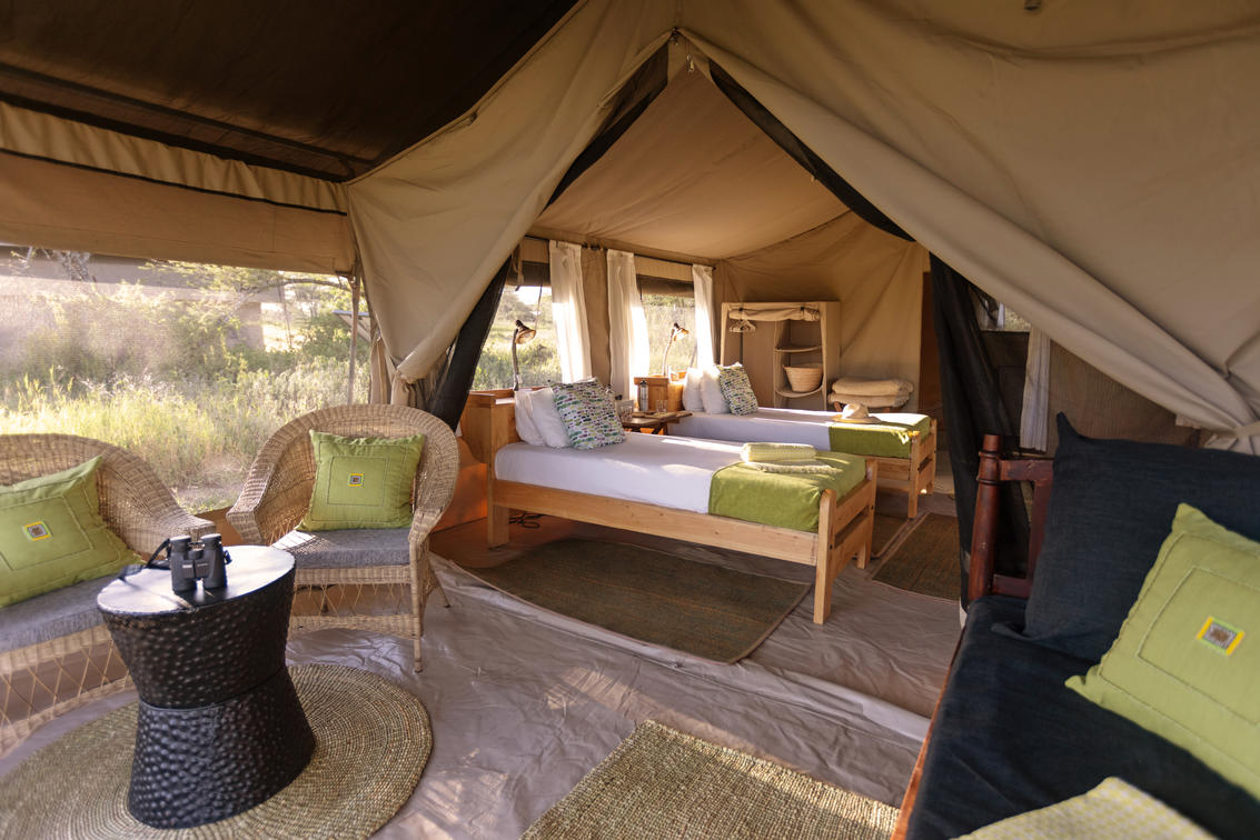 Ten spacious new tents (10m x 4m) are comfortably furnished and well-spaced for added privacy. Each features a generous verandah with both an open and a cool netted sitting area – perfect for relaxing by day or night. Inside, you’ll find an ensuite bathroom with a vanity basin, gravityfed shower, and toilet. Drift off to sleep to the sounds of nature, then wake to fresh tea or coffee delivered to your tent – best enjoyed on your verandah, which features with a comfy day bed, chairs and a table. The family tent is ideal for families with young children (min age 6 years)