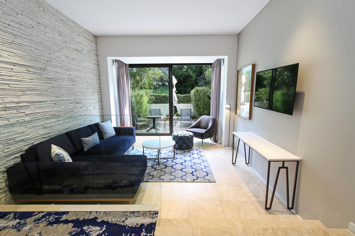 At the north end of the estate, Garden Junior Suites are restfully styled spaces with deluxe bathrooms with separate showers and baths. The bedrooms step down to cosy lounge areas and private garden patios. Each Junior Suite is equipped with a flatscreen, a queen bed, a hairdryer, a wall safe, Nespresso Coffee Machine and DVD player.