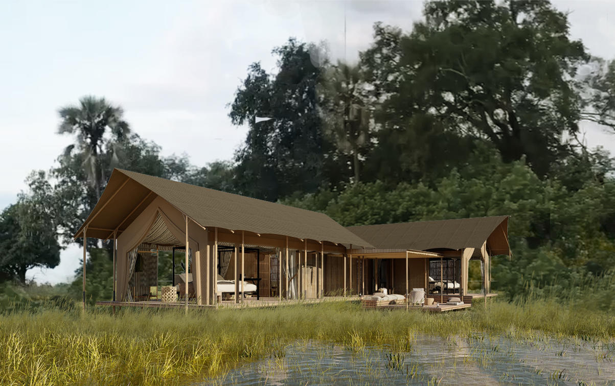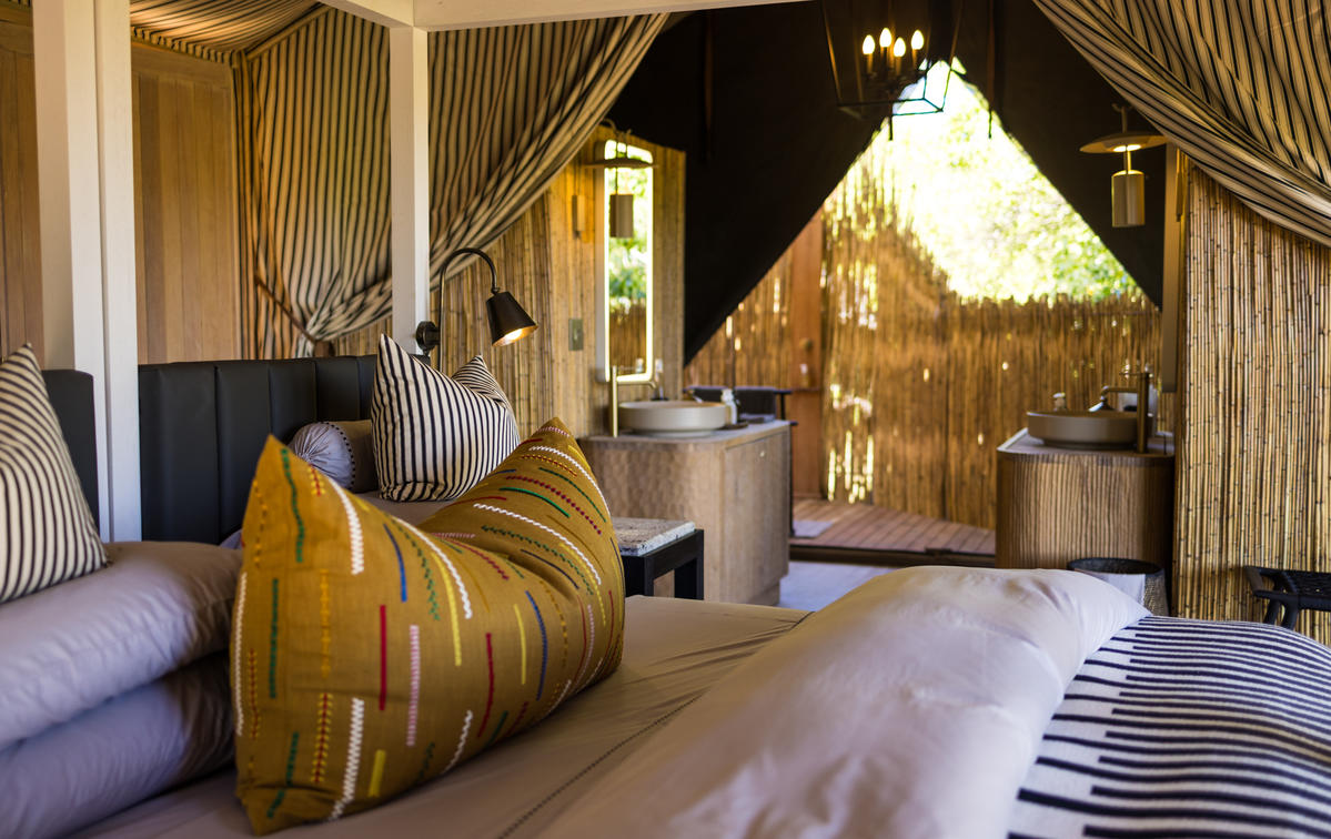 Two Luxury Tents combined with a common area, each with an en-suite bathroom.