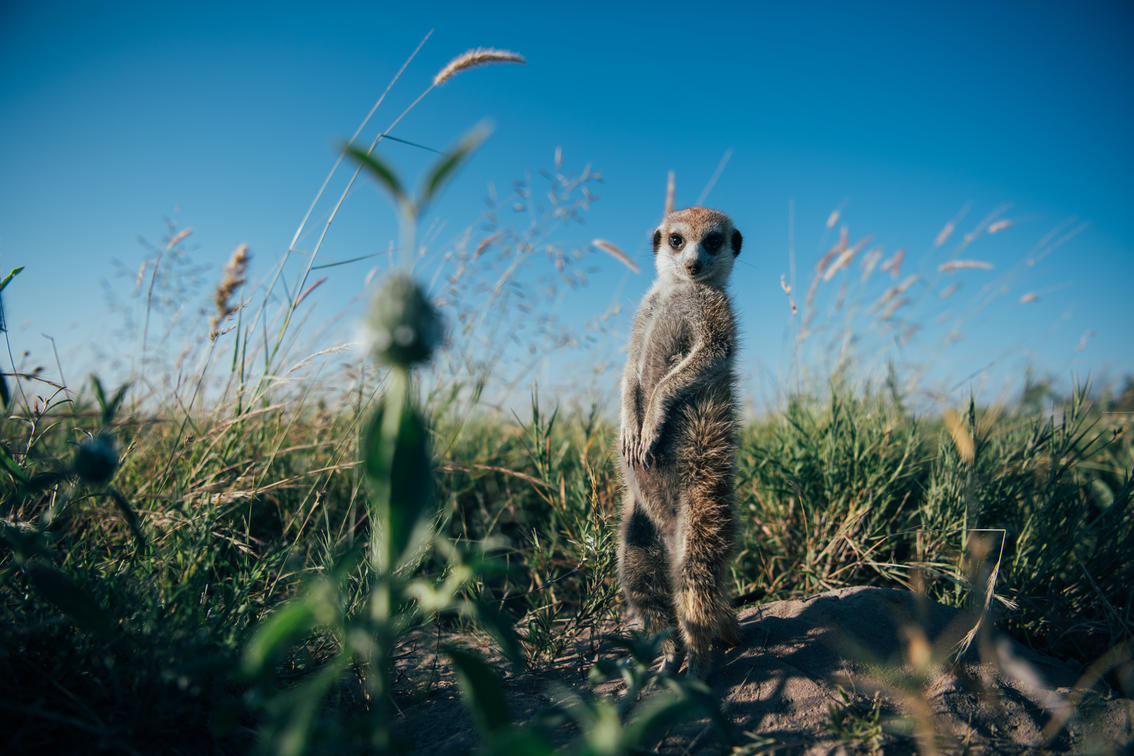 Get up close and personal with our families of habituated meerkats. Head out from camp at sunrise, so that you are ready to tail these delightful omnivores as they set off in search of their breakfast. Walk amongst them (advised by your guide) and if you take a seat you might be lucky enough to be mistaken for a termite mound, where you'll be used as a look out point for predators.