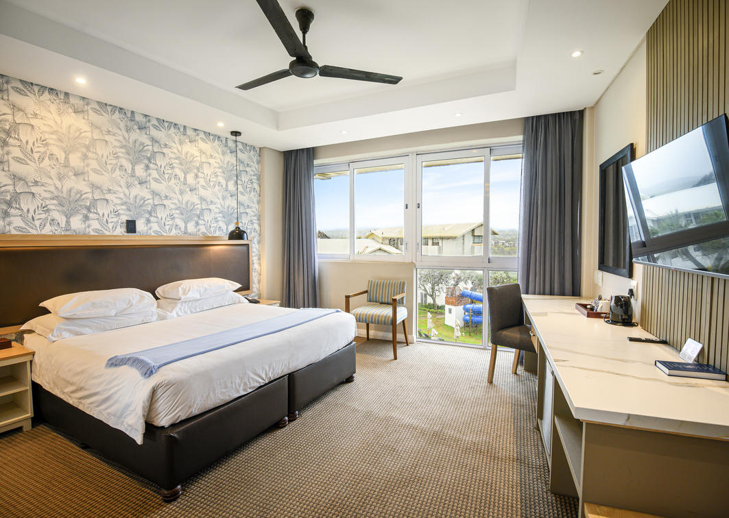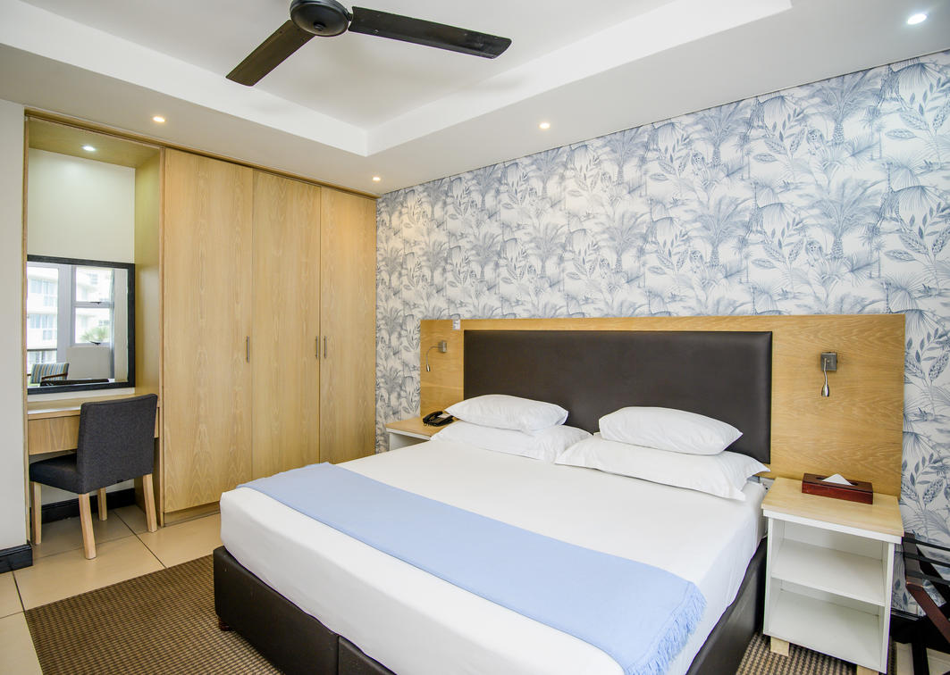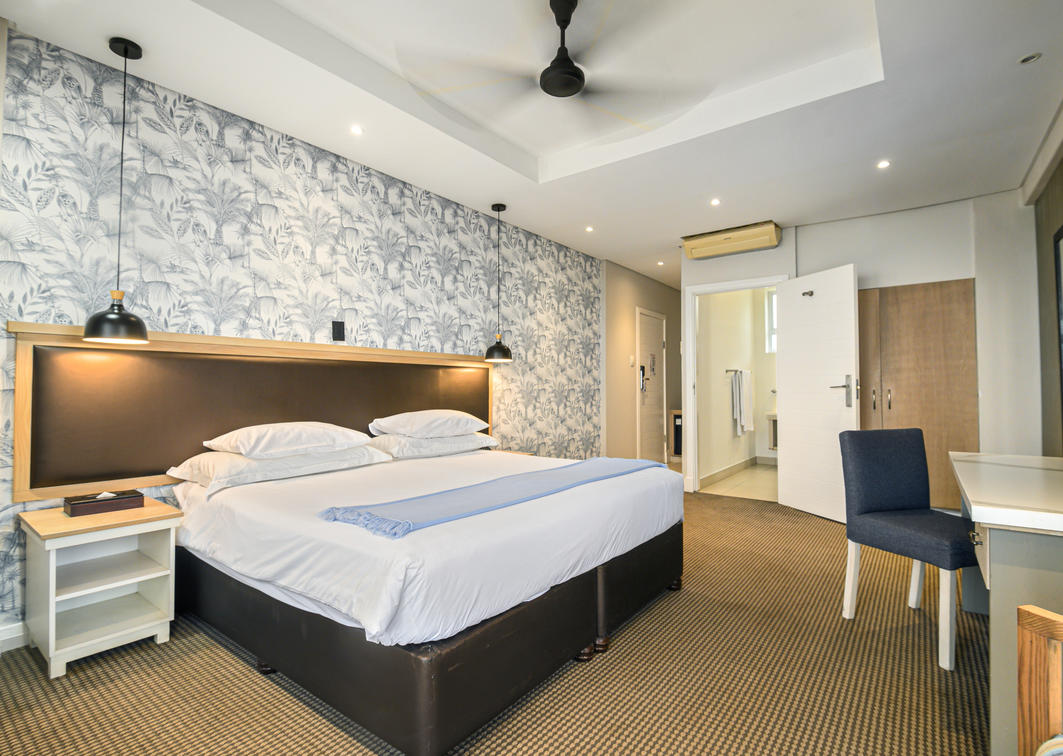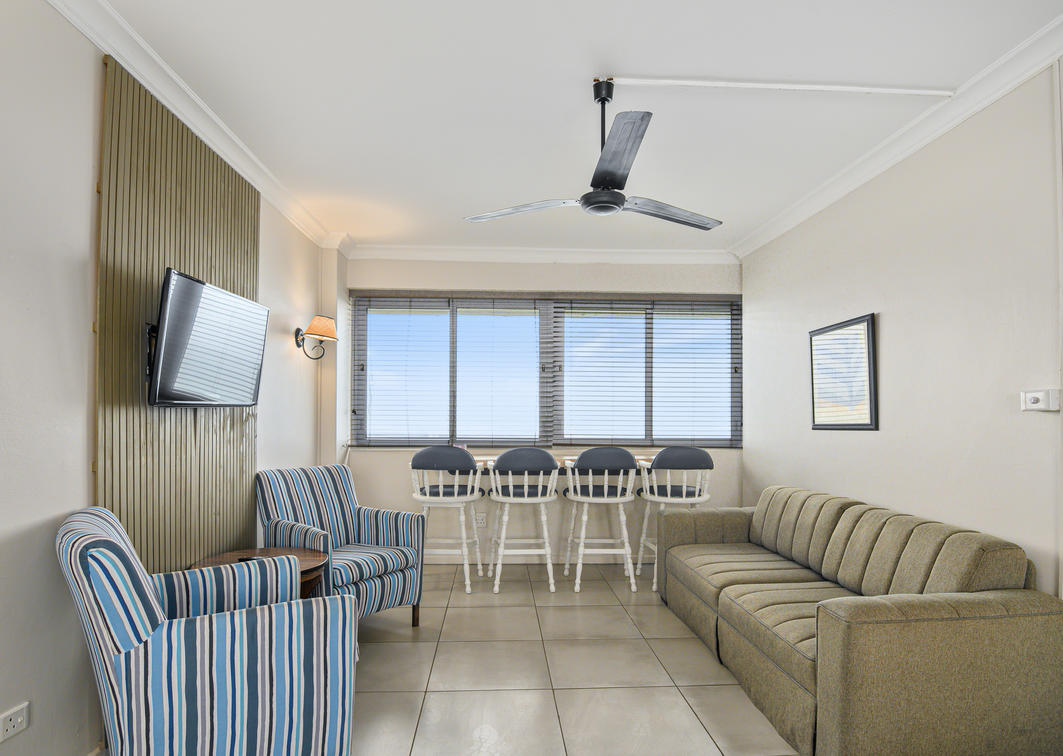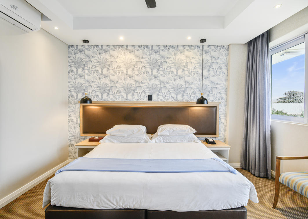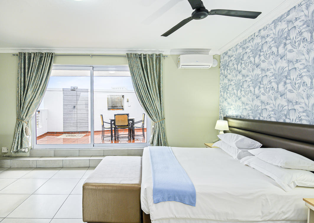 Be the king of your own castle in the penthouse suite. With five bedrooms and four bathrooms, the suite comfortably sleeps twelve. The penthouse includes a fully equipped kitchen, lounge and dining area and a stunning patio with a braai area.