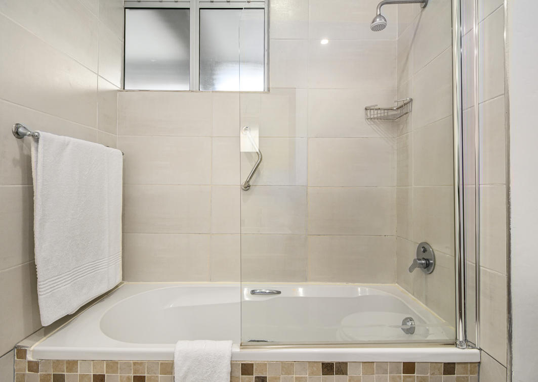 Third bedroom with twin beds and en suite bathroom with tub/shower