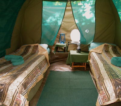 • Large spacious out of Africa style tents that are insect proof walk-in tents with comfortable beds.