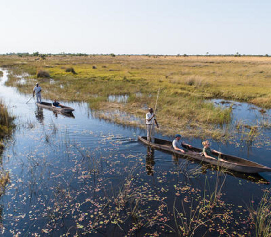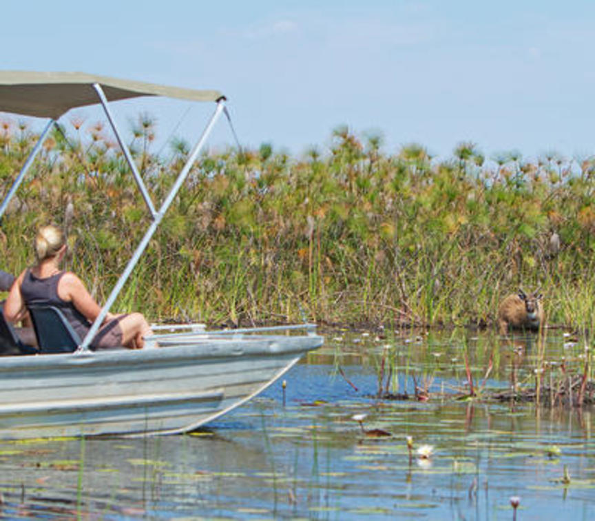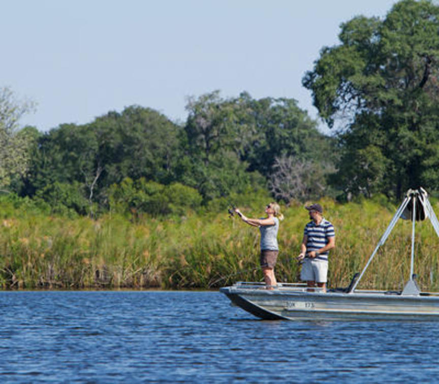Step aboard a hard-bottom aluminium motorboat to explore the deeper channels of the iconic Okavango Delta. Cruise through this pristine landscape and be treated to a stunning array of birdlife, plant species, and larger game such as elephants, with expert guides to uncover Delta gems along the way. The boats are equipped with comfortable seating, a foldaway canvas roof for shade, and life jackets for safety and comfort.