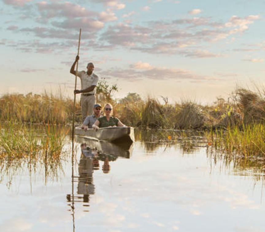 Drift through the Okavango Delta's serene, wildlife-rich channels in a mokoro (traditional dugout canoe), expertly navigated by seasoned guides. Immerse yourself in the vibrant diversity of birds, plants, and reptiles that thrive here, and savour the leisurely pace which enhances detail-orientated viewing.