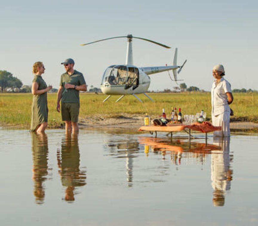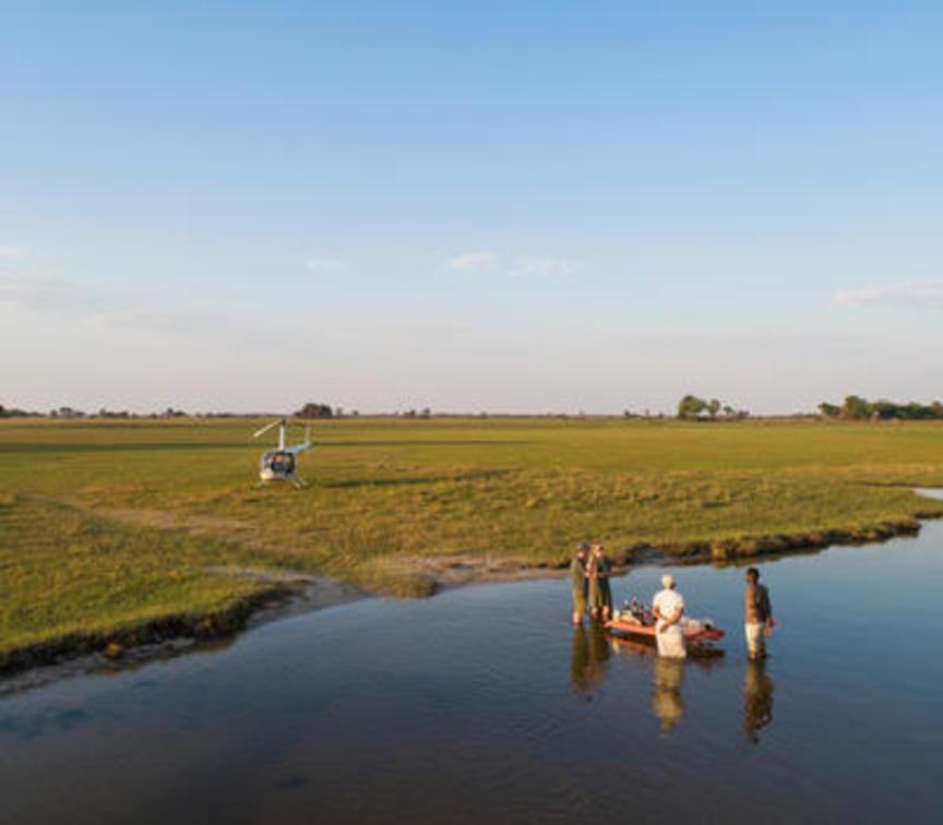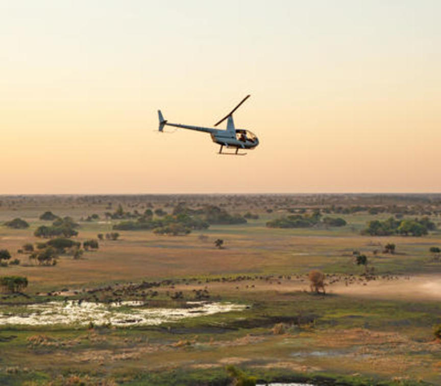 Seeing the Okavango Delta from a helicopter is a truly magnificent experience. Desert & Delta’s partners at Helicopter Horizons will remove the doors providing uninterrupted views and close up angles of the majestic Delta and its wildlife. A scenic flight is not just a must for keen photographers but an exciting opportunity to witness this remarkable network of land and water from above. The flights are operated with the utmost respect and caution for the natural environment, the wildlife and travellers. Routes have been carefully marked out ensuring guests on other activities and in camp are not disturbed. The flight routes and take off areas are designed specifically to make use of pristine areas within the concession.