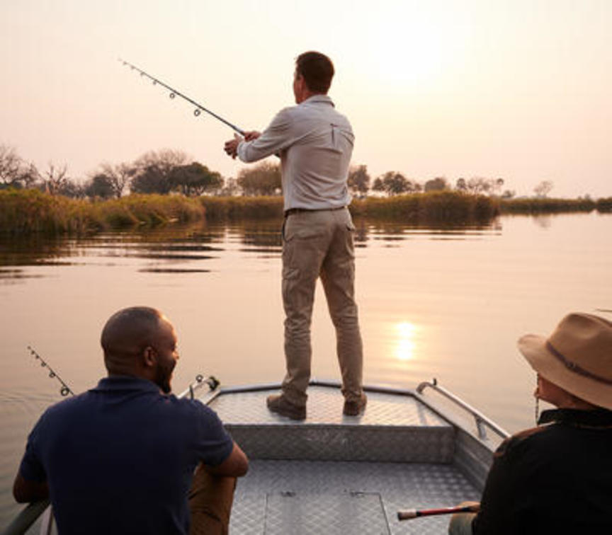 The Okavango Delta, brimming life beneath the surface, delivers the thrill of the chase. Seasoned and novice anglers alike are invited to cast their lines on a guided adventure. All fishing equipment is available at the lodge.