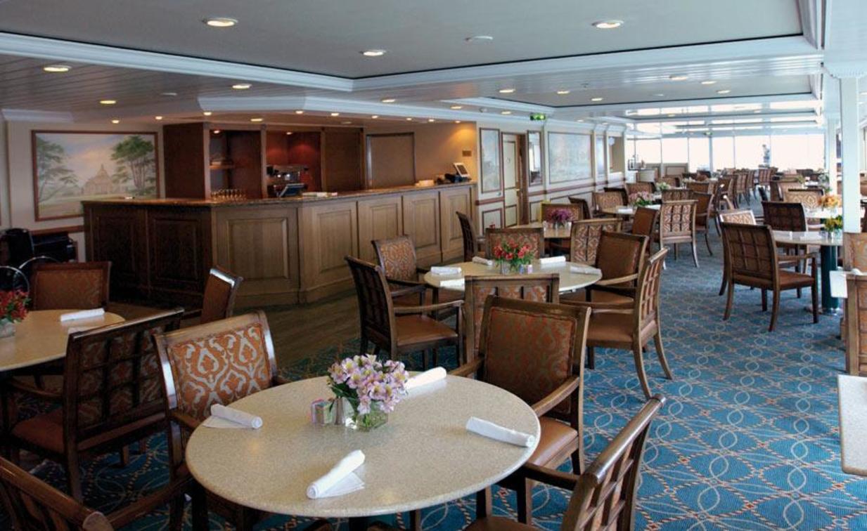 With open seating, allowing patrons to dine at their leisure, and delicious nightly selections, the ship’s main restaurant is not to be missed. Diners will find all their classic dinner favourites, very likely with a different twist, like gulf shrimp with cognac and garlic or a filet mignon with black truffle sauce.