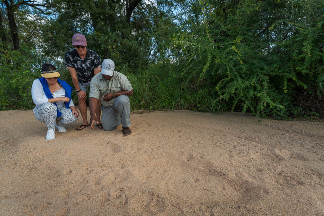 A fresh footprint in the dust, the faint sound of a breaking branch, wet mud rubbed on a tree, the presence of birds or a sudden quiet in the air are all part of the tracking experience. The senses are heightened searching for clues, sounds or smells to indicate an animal is nearby.