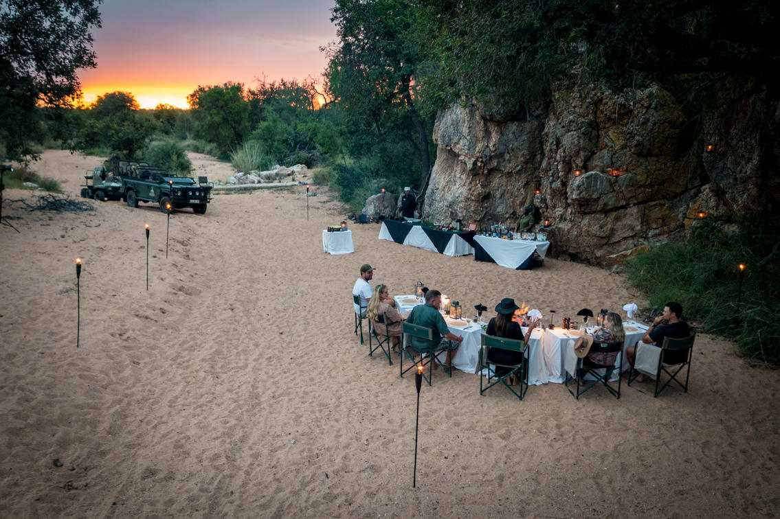 Book the lodge exclusively and enhance your experience with the Bush Cinema. Expert guides will escort you to a picturesque riverbed beneath Makumu, where lanterns create a magical atmosphere for an extraordinary evening. Enjoy a welcoming drink, Makumu Pizza by the fire, and settle into oversized beanbags for a unique cinematic experience surrounded by the African bush. The Bush Cinema at Makumu Private Game Lodge is the perfect blend of luxury, adventure, and wildlife immersion—an exceptional addition to your exclusive getaway in nature.