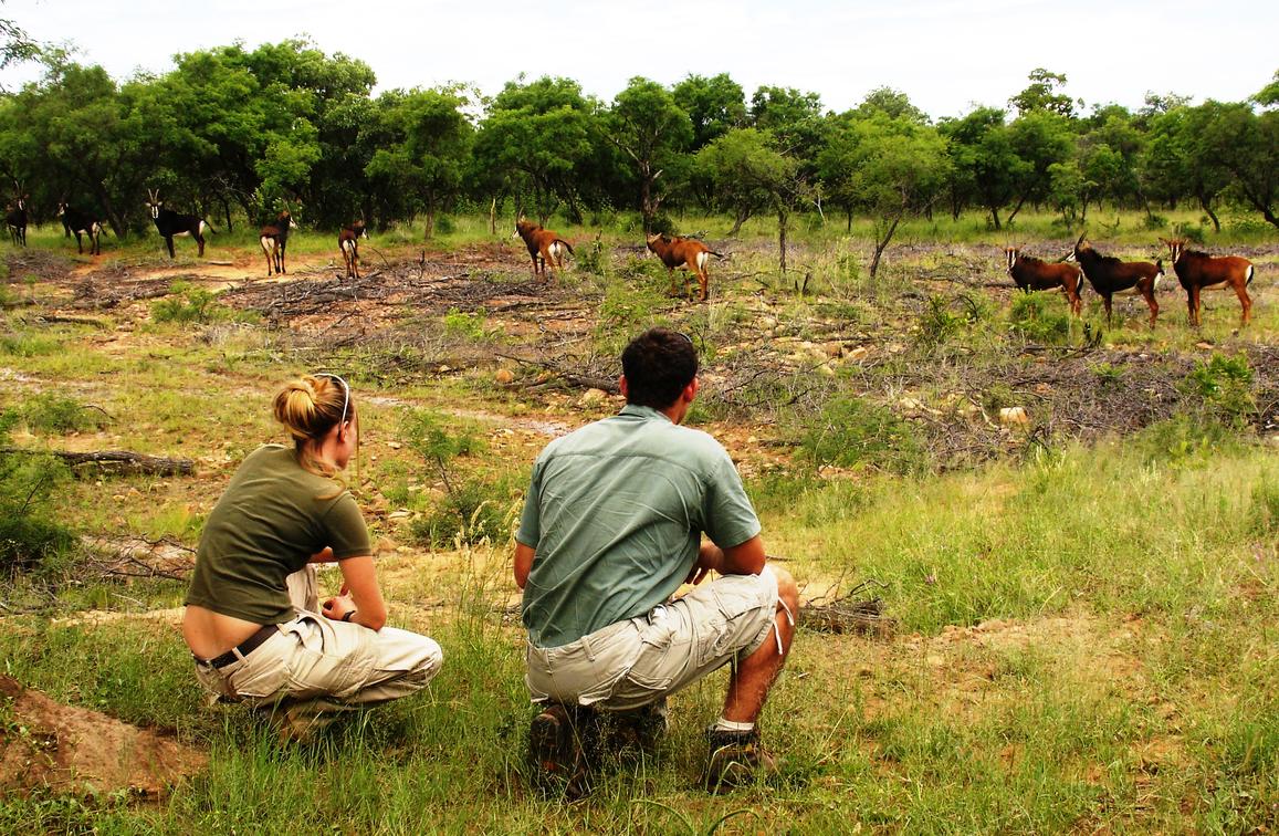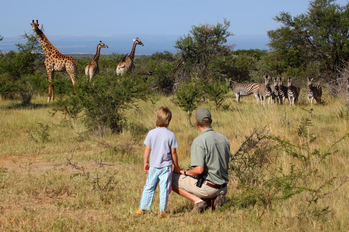 For those who prefer walking, our guides will lead you through the bushveld on foot. These walks are informative and interactive, enabling you to gain knowledge of African flora and fauna. One can often miss the smaller details of our beautiful environment when on a vehicle or horseback, so guided walks are highly recommended. These can be in the form of a gentle stroll to identify: insects and birds, track animals through the bush, and learn the medicinal properties of various trees and plants. Alternatively, the more energetic traveller can hike over the plains and up impressive gorges. Specialised bug hunts and learning to track game are available for children at both bush homes.