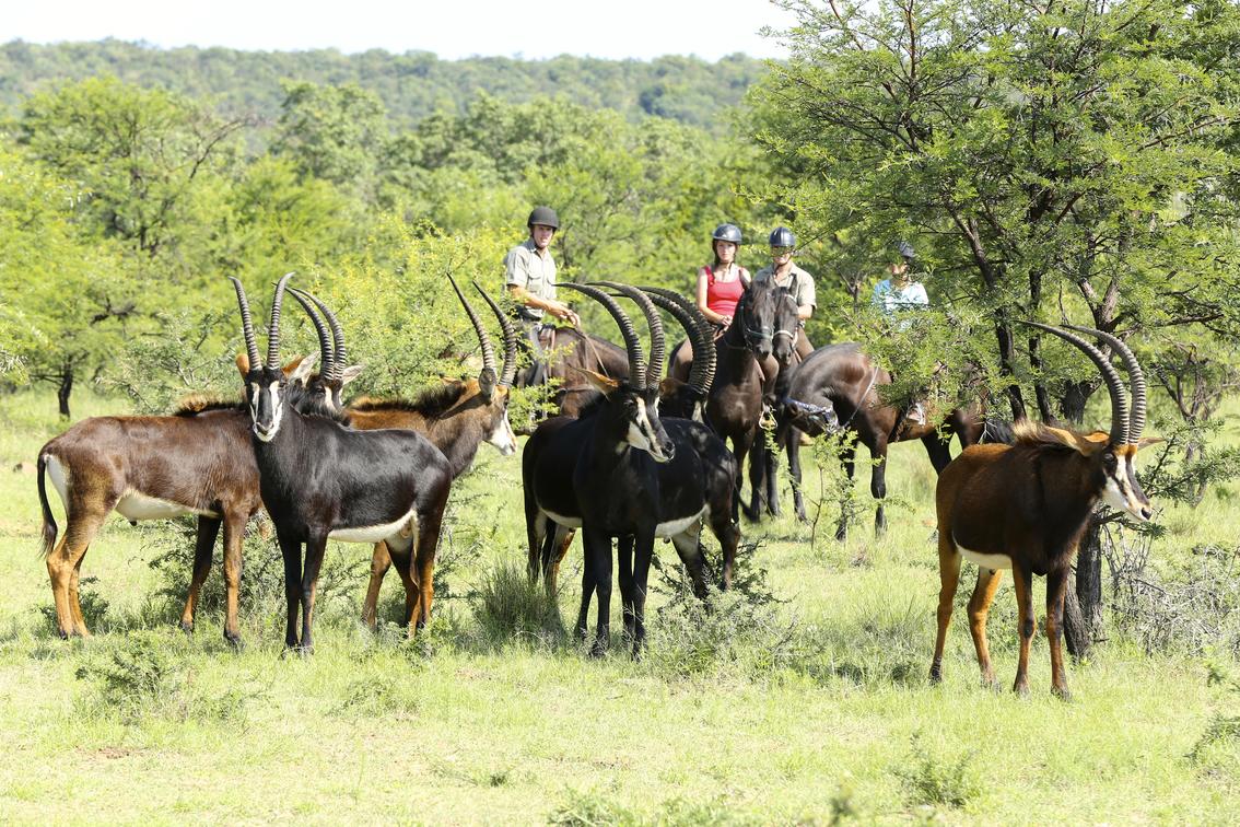 We have fit, reliable and responsive horses, providing a choice for both the professional rider and the absolute beginner. (You do not need to have ridden before). The herd of over 90 horses is made up of big thoroughbreds and Arab-Boerperd crosses and includes some fabulous children’s ponies. Each ride is led by two competent guides and the emphasis is on safety at all times. The enthusiastic rider may wish to ride twice daily and turn their stay into a luxury riding safari. Families or couples, where some ride and others don’t, can enjoy separate activities. As we always have two guides on each ride, novices can go out with their more competent partners without slowing the ride. Basic lessons for non-riders are available at both reserves; many guests learn to ride and gain confidence here.