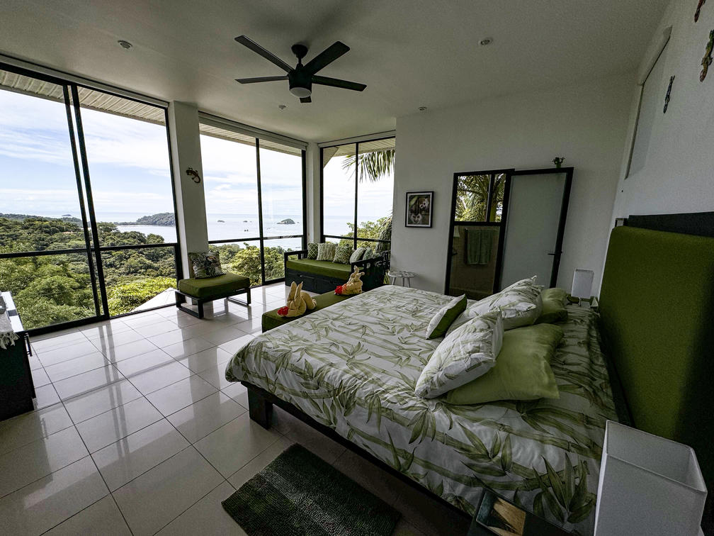 The second bedroom on the upper level has a more expansive view of the ocean that is just as stunning. It also has sliding doors that when open let nature in. The room has a king size bed, private bathroom and air conditioning.