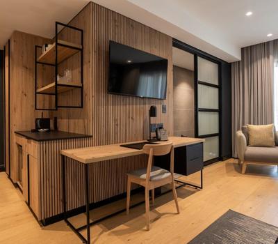 Our Junior Suite offers an exquisite blend of space and comfort, featuring a separate lounge area and a distinct bedroom for enhanced privacy. The en-suite bathroom is elegantly appointed with both a shower and a luxurious bathtub. Guests can indulge in breathtaking views of the surrounding landscape, creating a serene backdrop for your stay. Thoughtfully designed, the suite includes modern amenities such as a flat-screen TV, complimentary Wi-Fi, and a work desk. Ideal for discerning travelers, this suite ensures a sophisticated and relaxing experience with all the conveniences you desire.