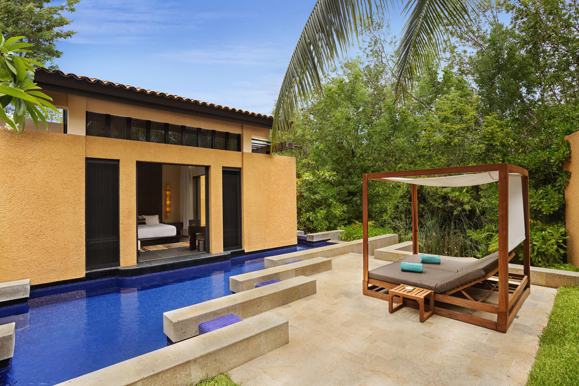 Days in our newly - renovated Deluxe Pool Villa with living room are spent listening to the tranquil sounds of the jungle around you as you dip in your private full-sized pool overlooking the lagoon or lounge on the hammock on your terrace.