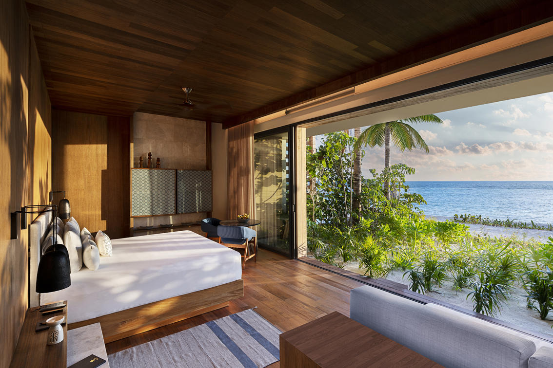 Step directly from your bedroom onto your spacious private terrace, where the gentle sound of the waves and breathtaking views of the Caribbean’s turquoise waters await. This one-bedroom beachfront suite offers the perfect blend of luxury and privacy, featuring a plunge pool just steps from the sand and direct beach access for an immersive seaside experience.
