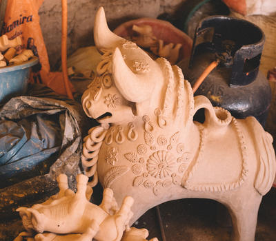 Un recorrido desde Tinajani nos lleva a Pucará, un pueblo del altiplano reconocido en todo el Perú por sus Toritos de cerámica, símbolos de protección, dicha y prosperidad que coronan muchos hogares andinos. Durante la visita, ingresamos a un taller tradicional para observar cómo estas piezas se modelan y pintan a mano, y comprender el significado cultural que tienen para las familias locales. Pucará es también cuna de la antigua cultura Pukará. Su pequeño museo lítico reúne monolitos y piezas ceremoniales que dan cuenta de una de las civilizaciones más tempranas del sur andino. A pocos pasos, la iglesia de Santa Isabel refleja el encuentro sereno entre la tradición andina y la herencia colonial, completando una experiencia cercana y auténtica del ritmo cotidiano de este pueblo de altura.