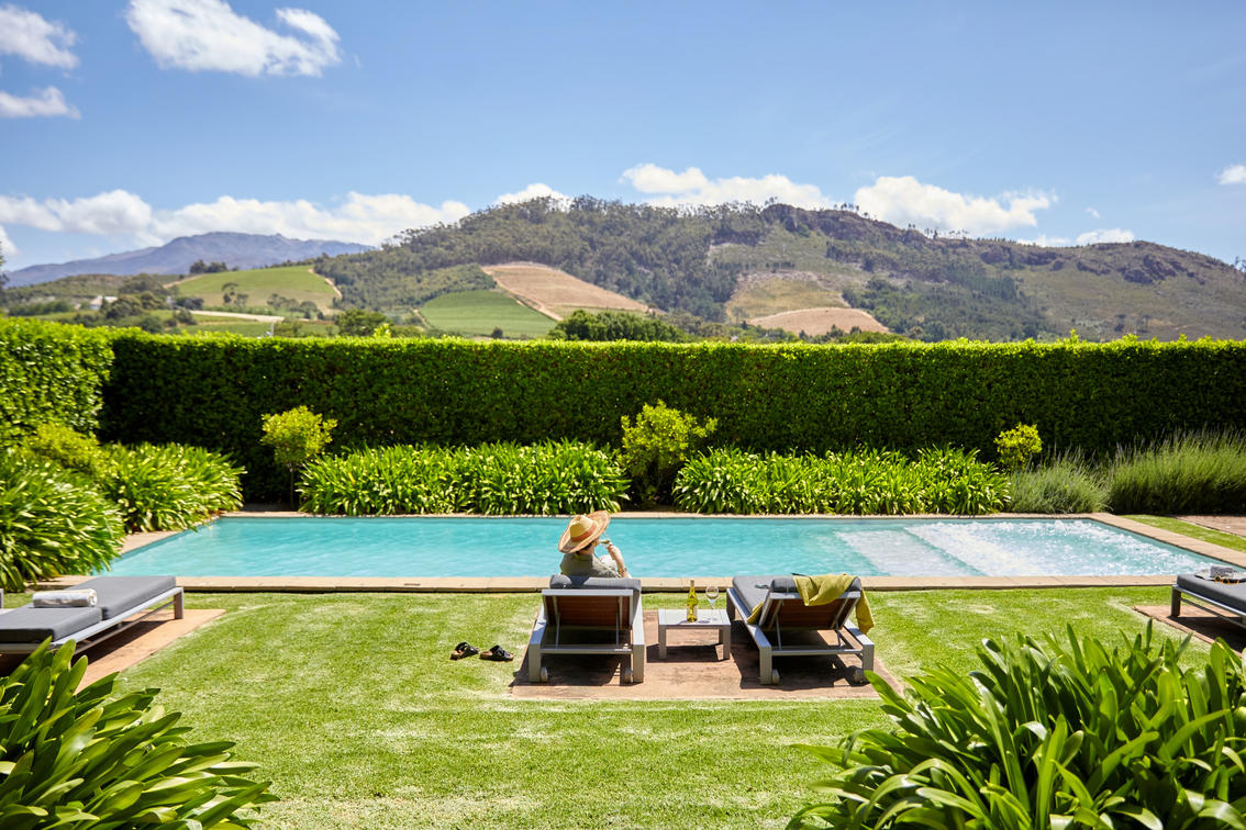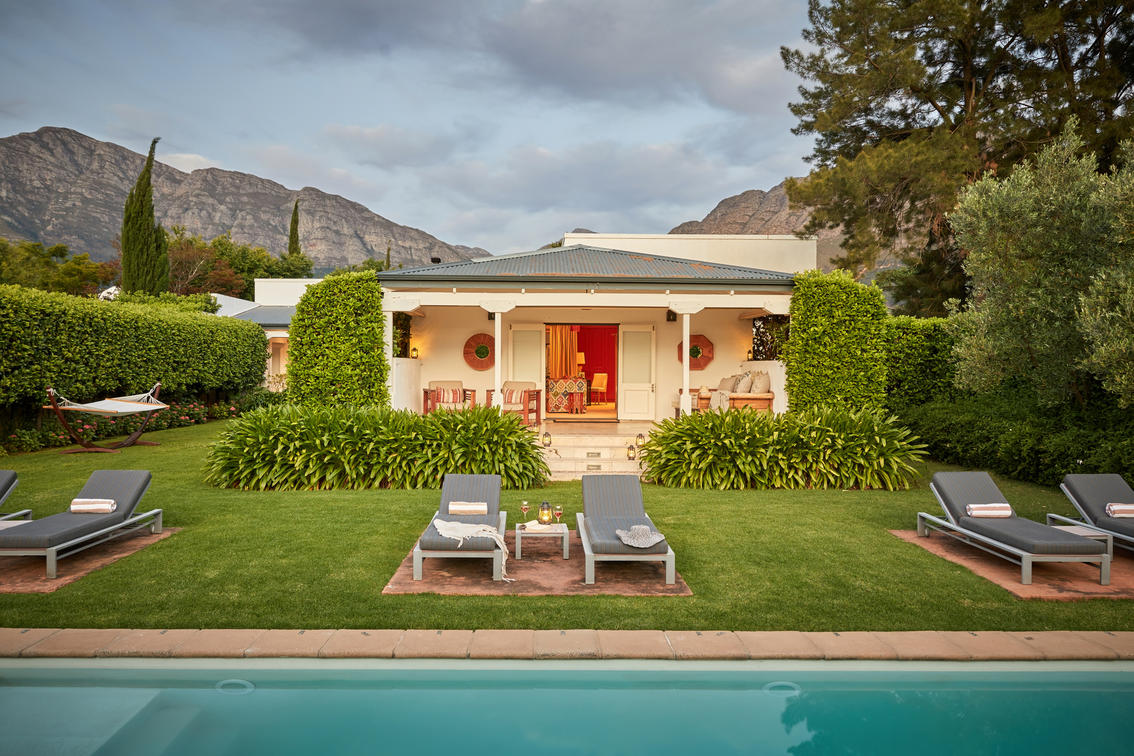 Reminiscent of an eclectic artist’s residence, the Galerie is a light and airy contemporary 2-bedroom villa with an open-plan living area leading to a private garden and pool with views of the vineyards and mountains.