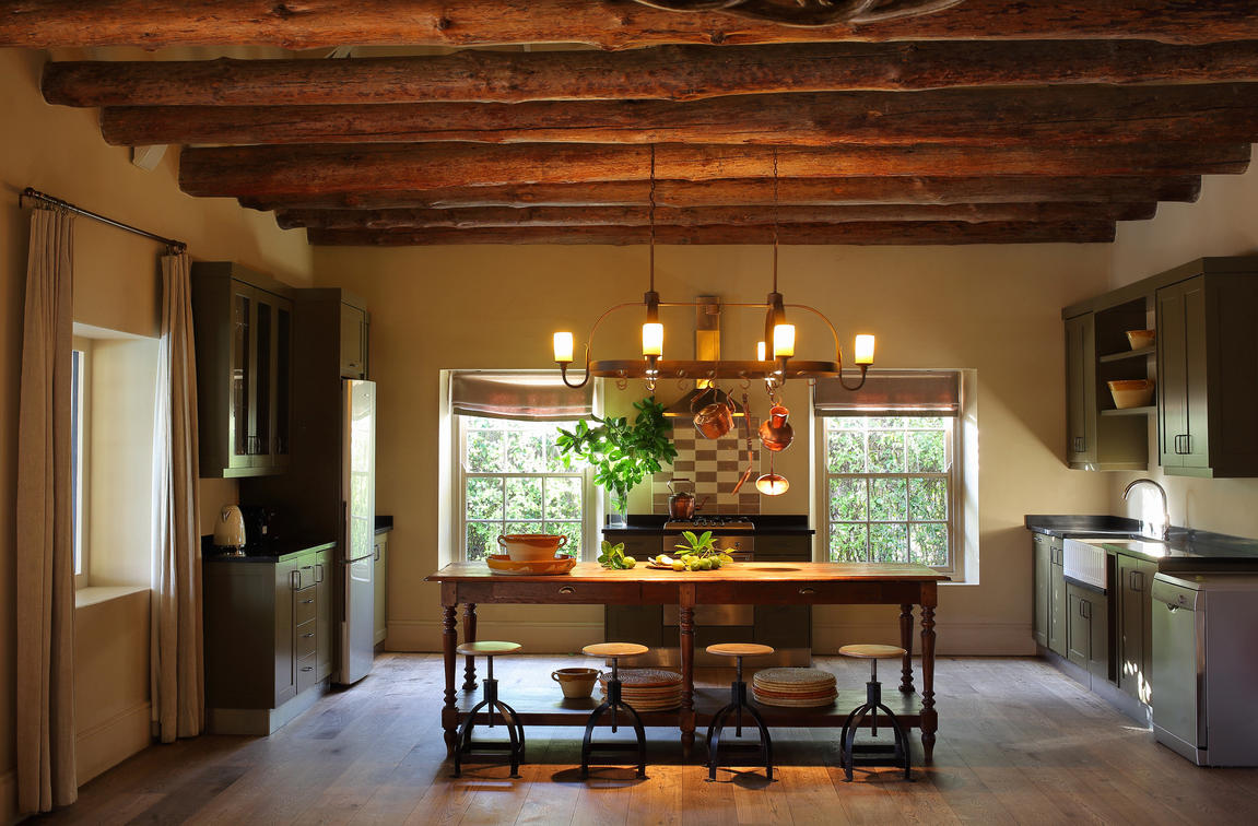 Once a village barn, then a restaurant and jazz bar, the historic 3-bedroom Grange with its soaring poplar-beamed ceilings was sensitively converted to create a welcoming villa with earthy color palettes.