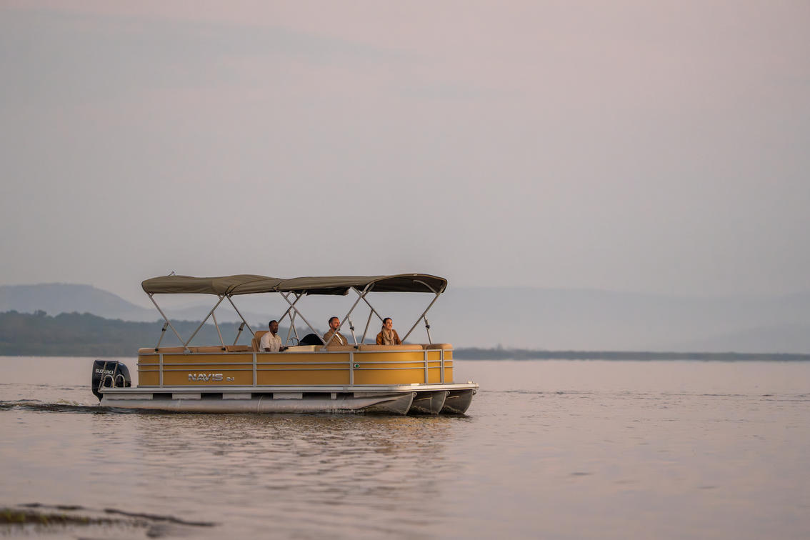 Two luxurious pontoons and a swamp cruiser enable scenic lake outings, picnic lunches, and sunset cocktails. Wildlife viewing from the water is exceptional, with regular sightings of rhino, elephant, and buffalo, and even leopard and lion on occasion.
