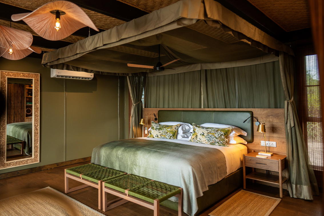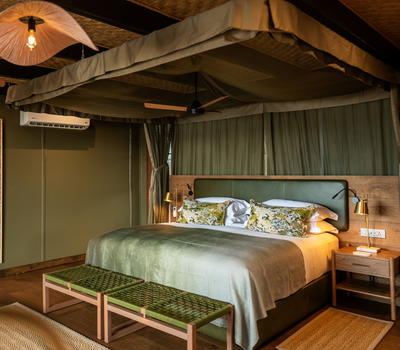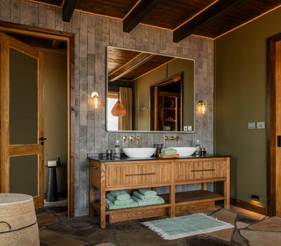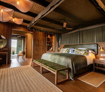 In a class of its own, the camp combines Rwandan-inspired design with contemporary luxury. Elevated for sweeping views, accommodations include 2 spacious twin suites and a sole-use 4-bed private villa. Positioned 200-metres apart, these suites offer an exclusive, peaceful retreat. All rooms feature star beds, perfect for stargazing or sleeping under the stars with unobstructed views of the surrounding area.
