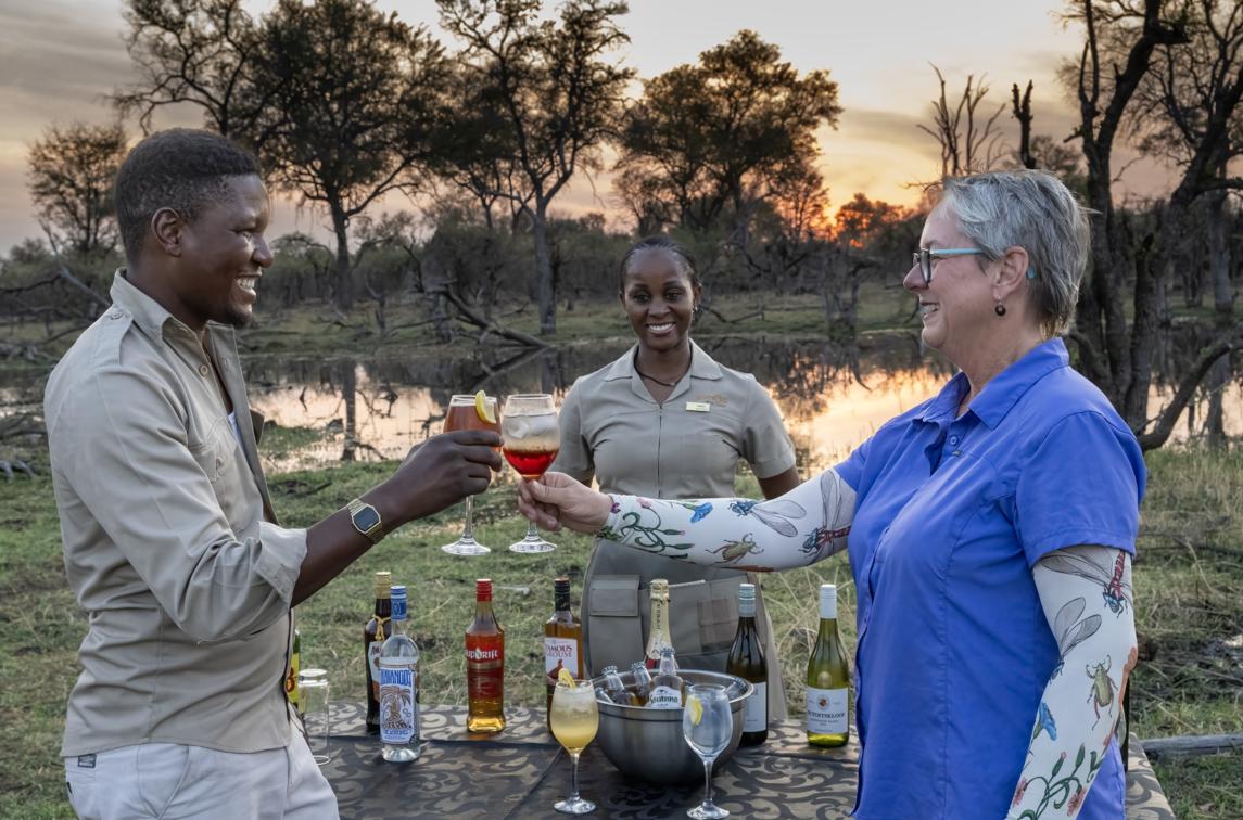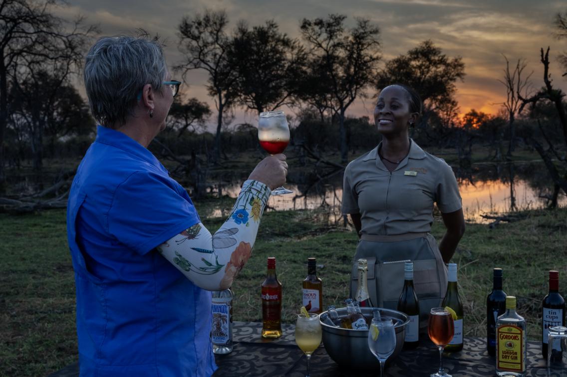 At Gomoti Villas , sundowners are more than just a ritual—they are a celebration of the African day’s end, embraced in true Botswana style. As the golden hour begins to stretch across the sky, guests are whisked away to carefully chosen vantage points—perhaps a quiet bend along the river or a sandy rise with uninterrupted views of the Okavango floodplains. There, with a chilled drink in hand and the sounds of the bush around you, the magic of the wilderness comes alive.