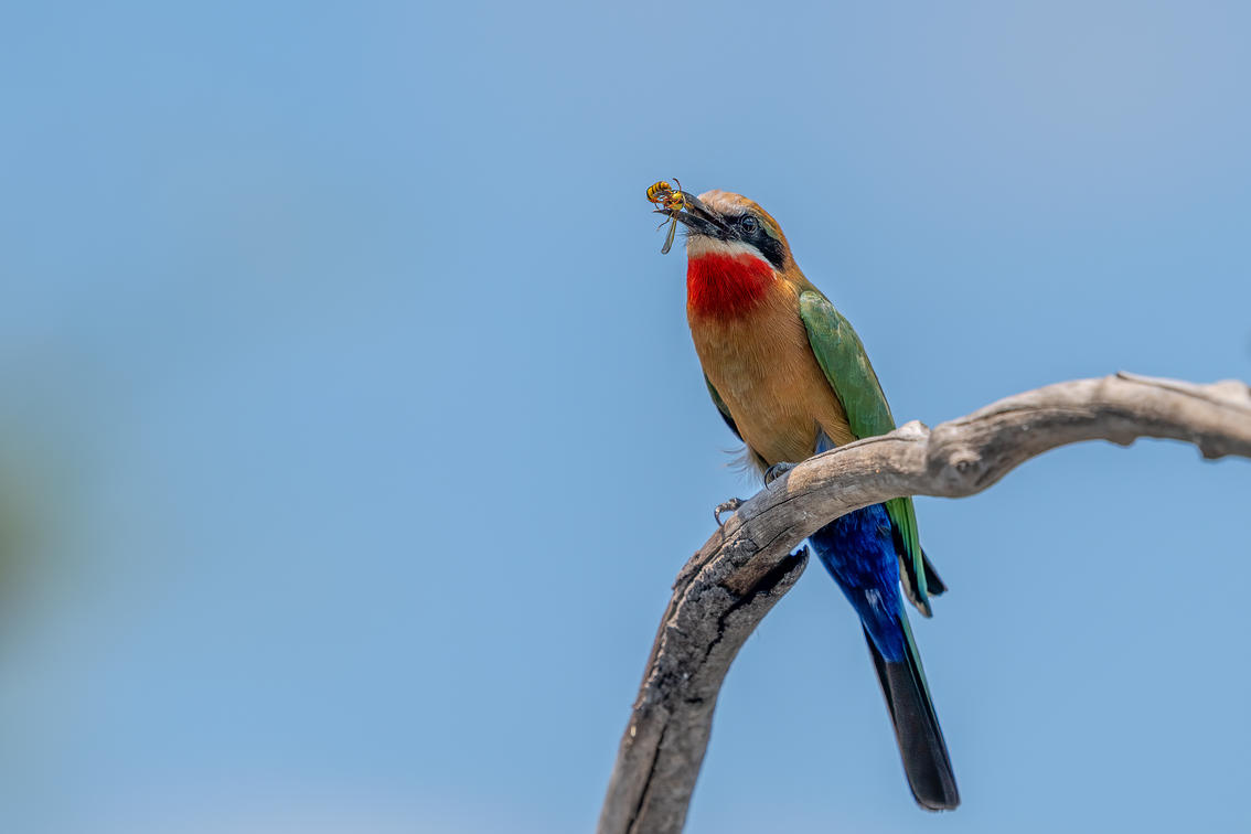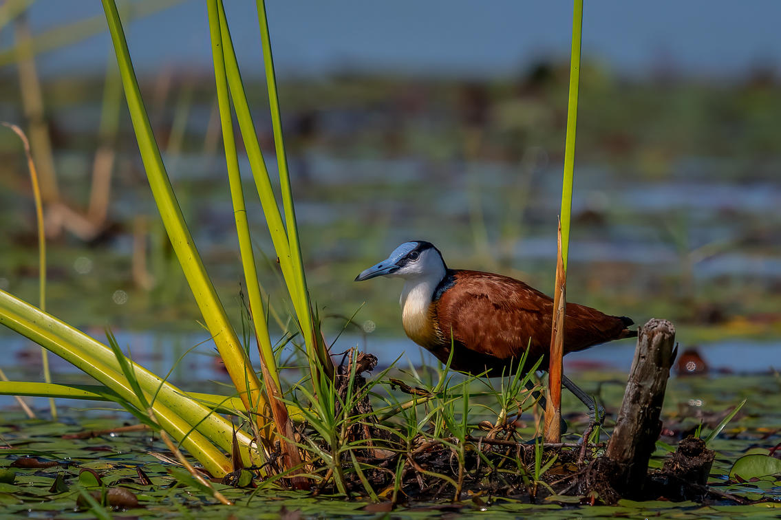Moremi is known for its iconic birdlife, including the rare wattled crane, the elusive Pel’s fishing owl, and the striking slaty egret. Raptors like the majestic bateleur and African fish eagle soar above, casting watchful eyes over the wilderness below.