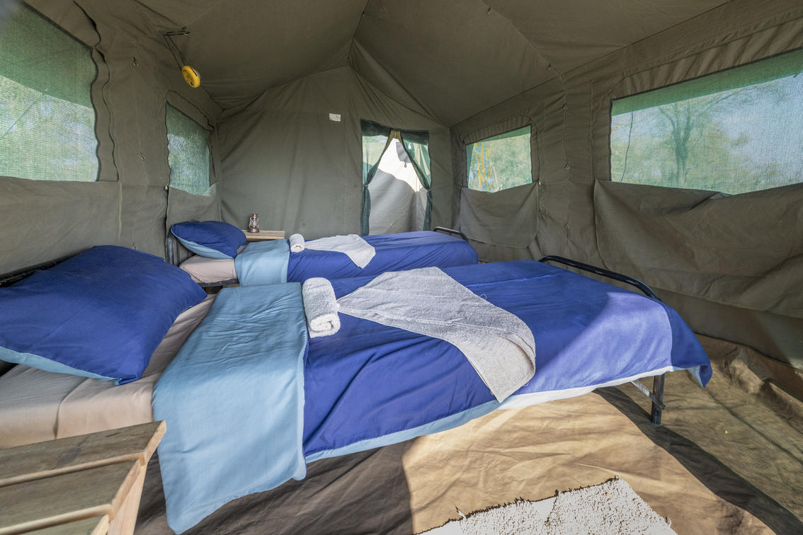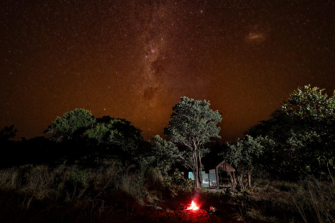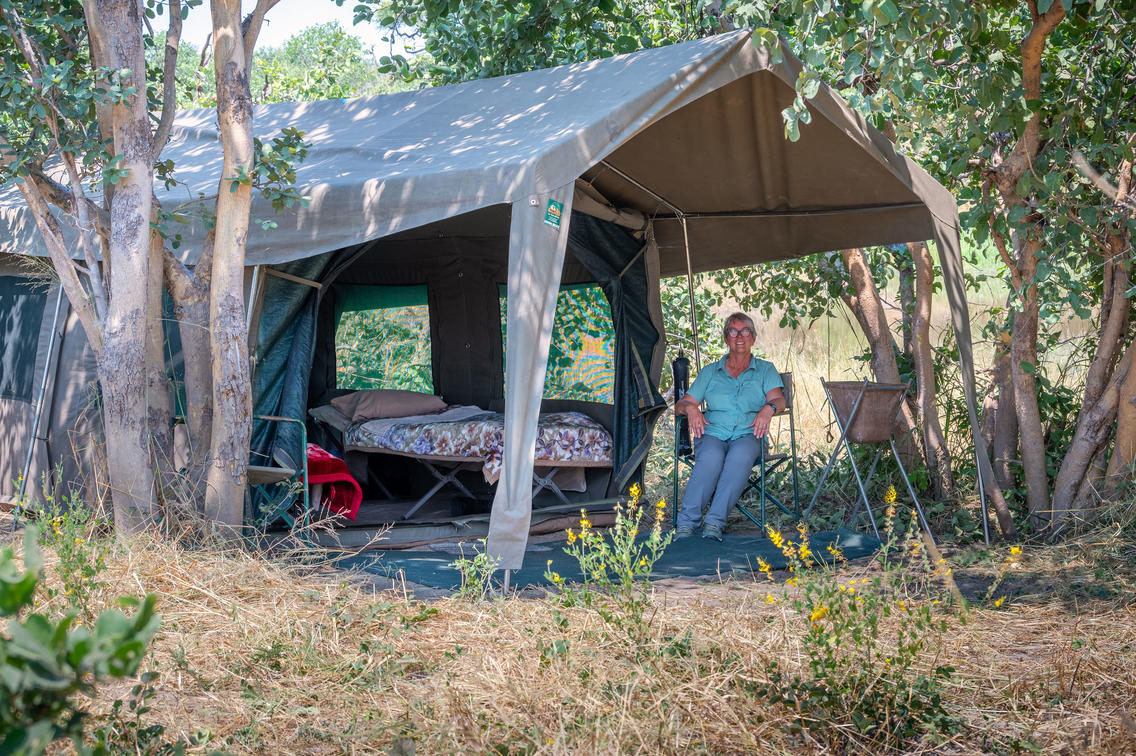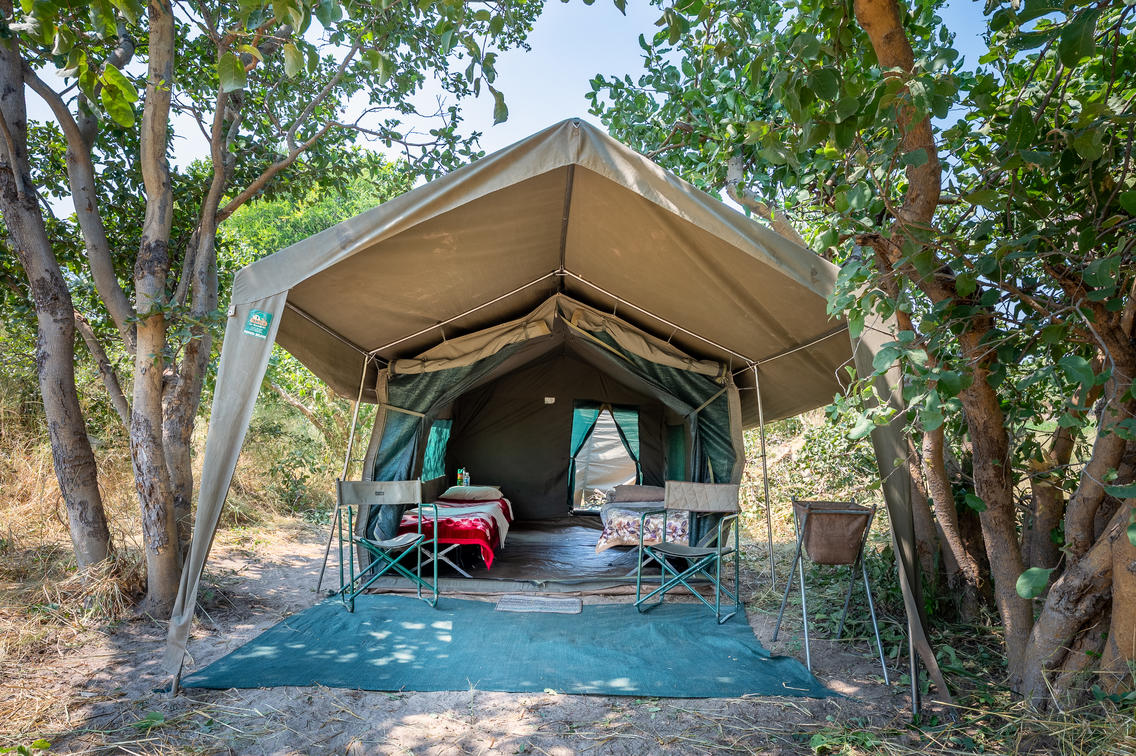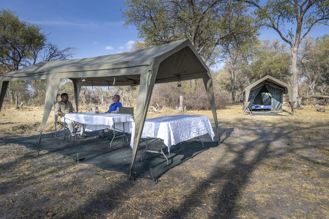 The mobile camp is thoughtfully positioned on the banks of the Khwai River, offering guests breathtaking views and a truly remote, tranquil setting. Accommodations feature spacious mini-Meru tents with en-suite bathroom facilities, comfortable bedding, and soft lighting to provide a balance of comfort and wilderness. At the heart of the camp, guests gather in a central dining tent and enjoy evenings seated around the open fire—sharing stories under the stars. This simple yet atmospheric guest area enhances the feeling of community and connection with nature. With expert guides leading game drives and walking safaris each day, the experience is as informative as it is exhilarating—an authentic, low-impact safari that places guests at the very heart of Botswana’s wild beauty.