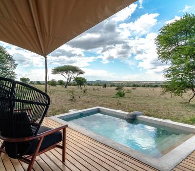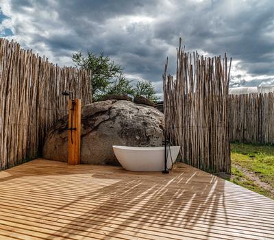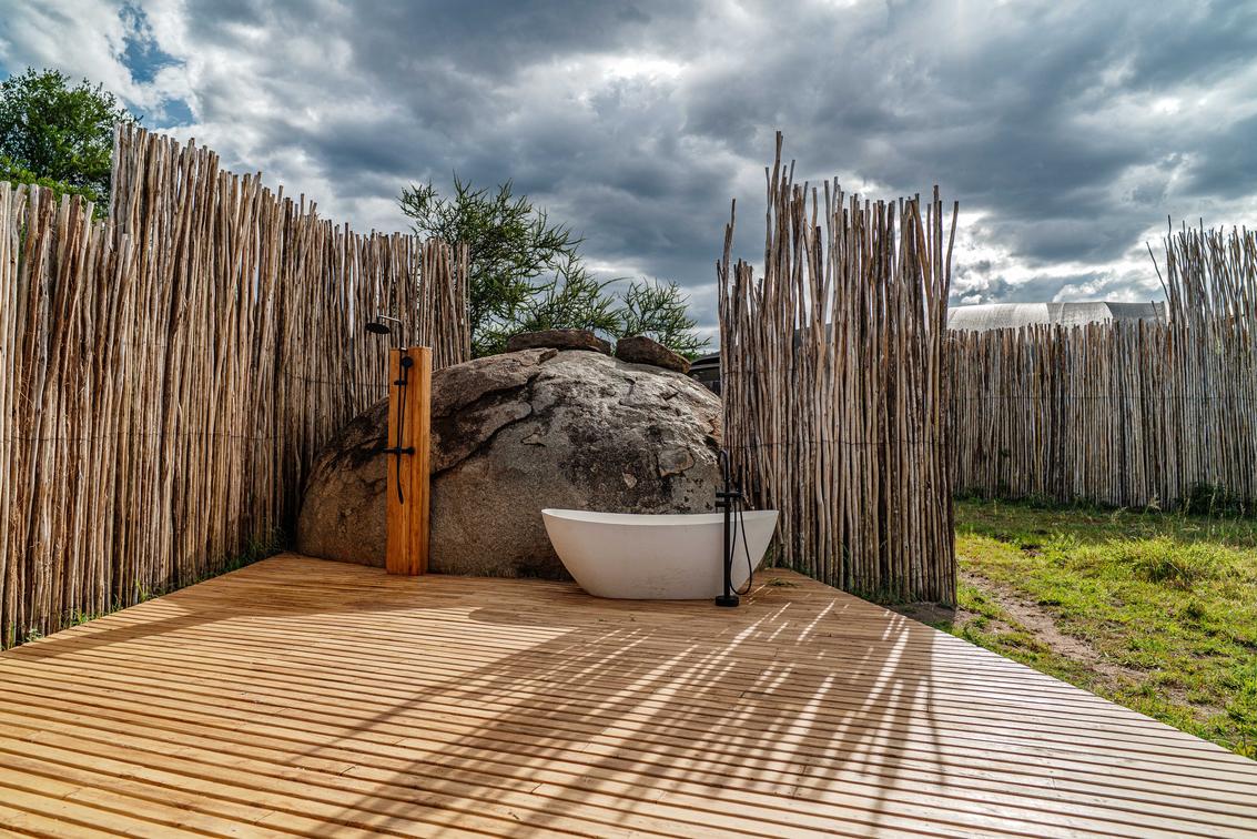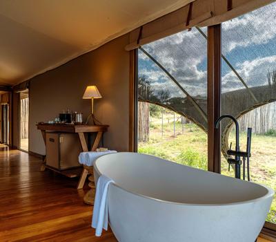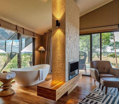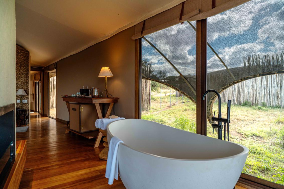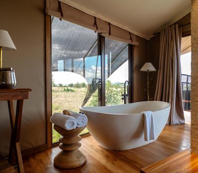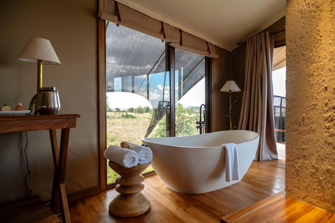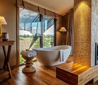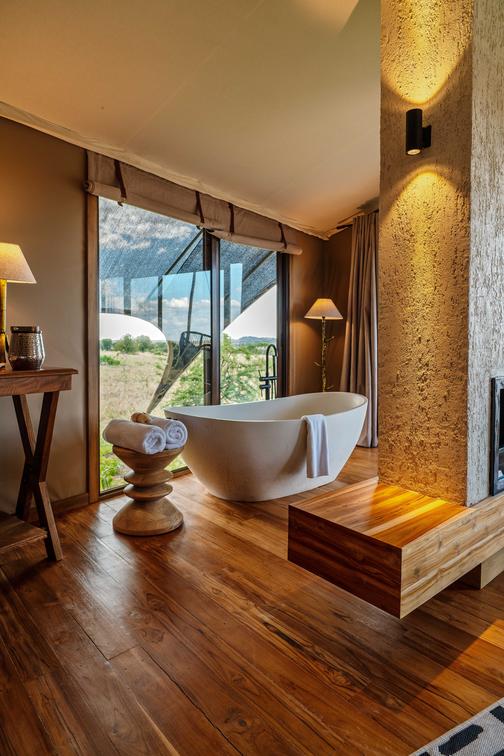 - A freestanding bathtub with sweeping views of the Serengeti