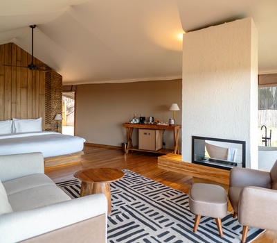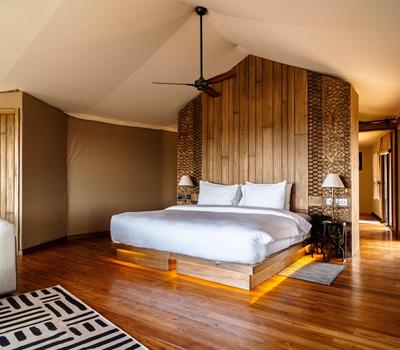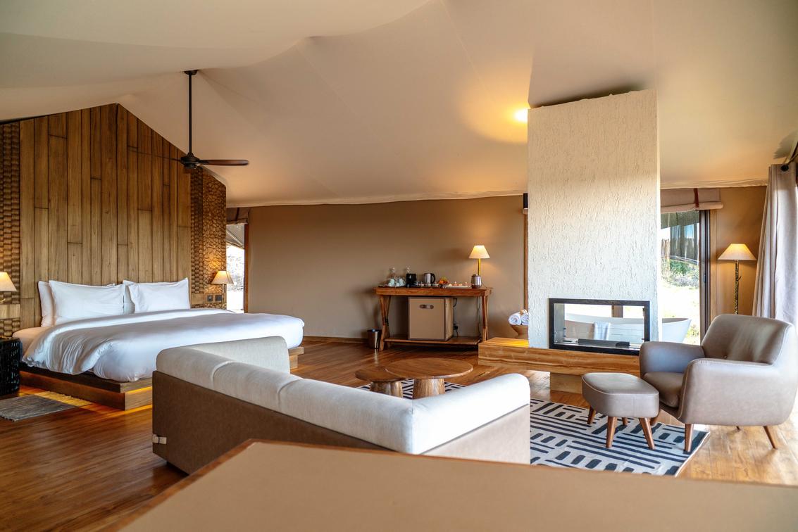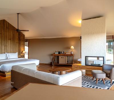 Our lodge offers an intimate escape with just 13 exquisitely appointed, insulated luxury tented suites—each thoughtfully designed to harmonize privacy, comfort, and the breathtaking natural surroundings. 13 spacious double suites with king-size beds (convertible to twin or triple)