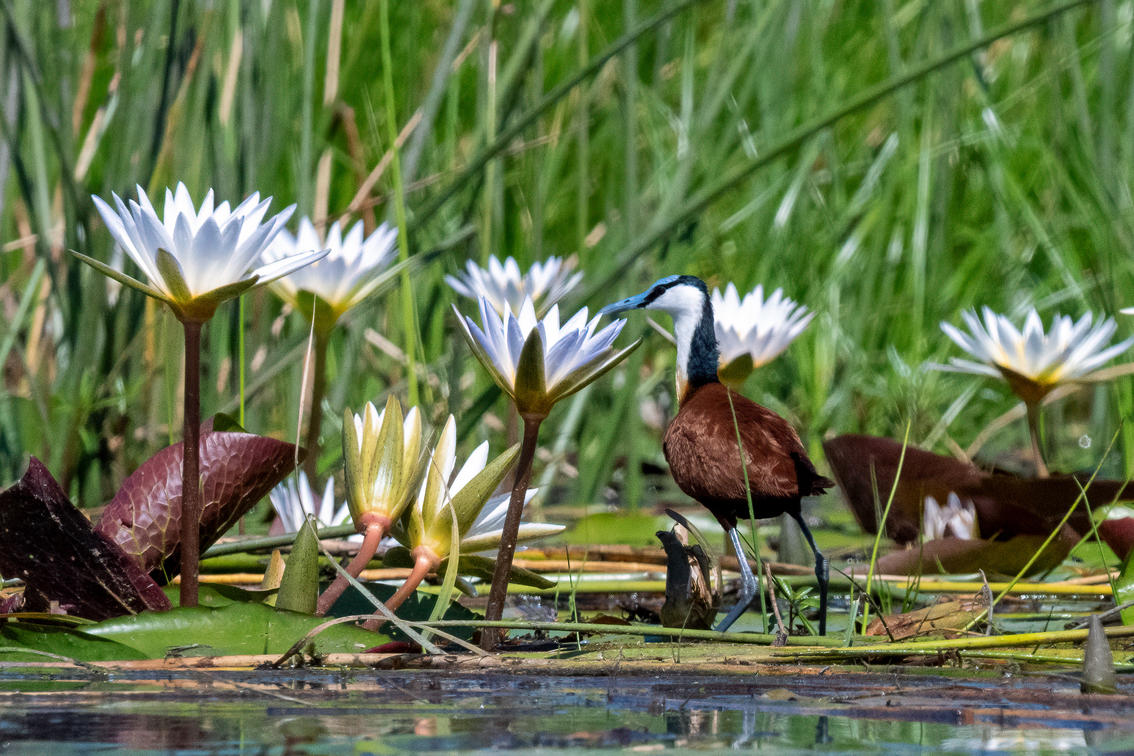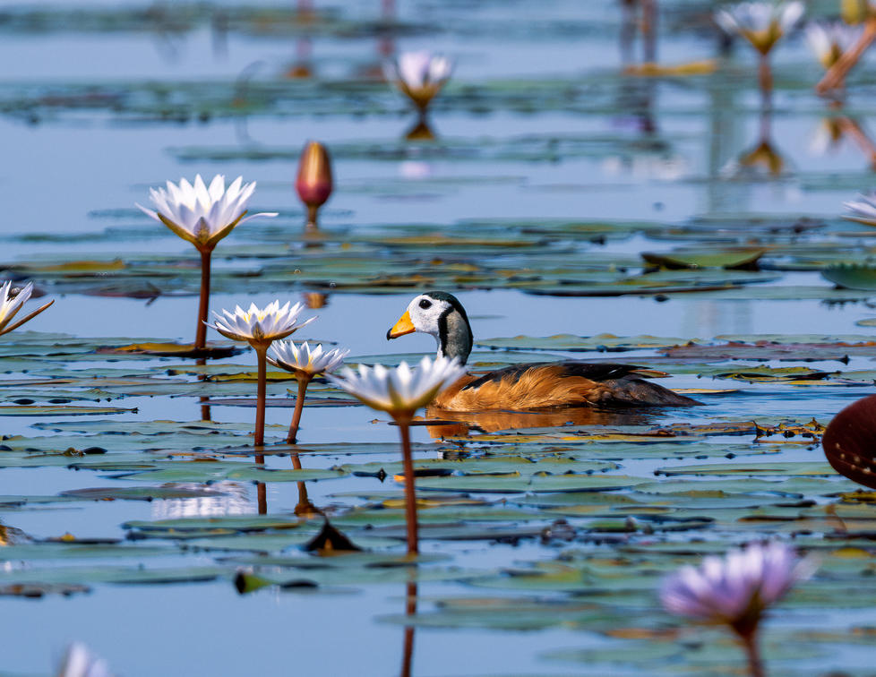 Birdlife abounds here — kingfishers dart between the reeds, herons and storks patrol the edges, and jacanas step lightly across the lily pads. It is a scene of serenity and raw natural beauty, an experience that stirs the soul and lingers in memory long after the journey ends.