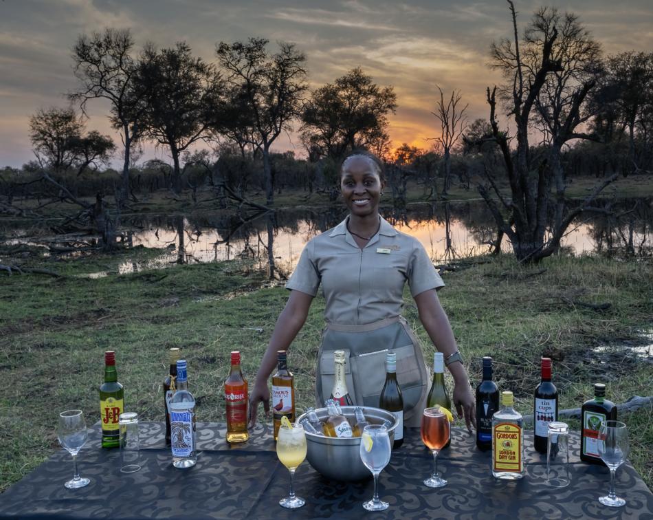 At Losika Elephant Camp, sundowners are more than just a ritual—they are a celebration of the African day’s end, embraced in true Botswana style. As the golden hour begins to stretch across the sky, guests are whisked away to carefully chosen vantage points—perhaps a quiet bend along the river or a sandy rise with uninterrupted views of the Okavango floodplains. There, with a chilled drink in hand and the sounds of the bush around you, the magic of the wilderness comes alive.