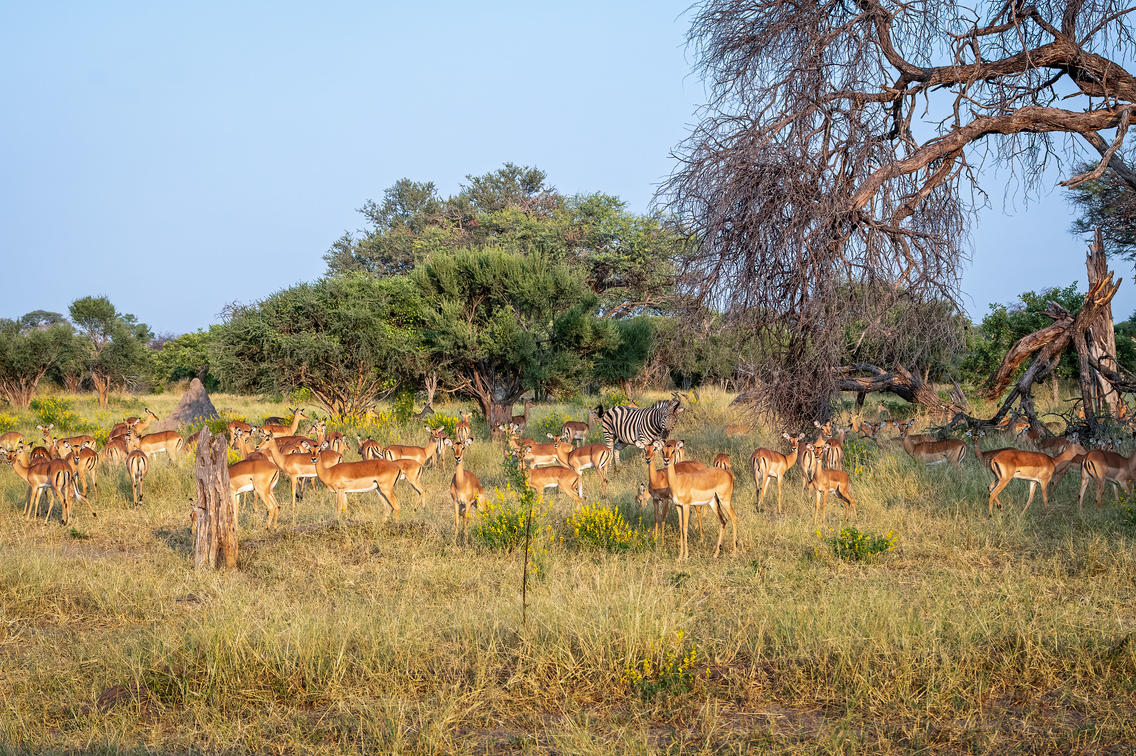 Guests travel into the NG35 concession, taking advantage of the cooler temperatures and soft morning light. They explore a mosaic of habitats—from open grasslands and mopane woodlands to riverine forests, seasonal floodplains, and permanent watercourses. This diversity of vegetation and water brings an impressive variety of wildlife, making the area one of the very best for game viewing.