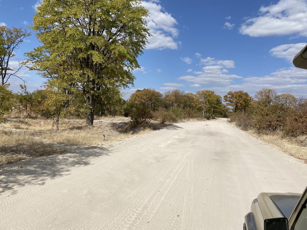 Continuing along sandy road through the Mopani belt. . As the road narrows into a rural two-track, you enter the Greater Okavango Delta. The landscape transforms—Mopani woodlands, mixed forests, open savanna, and waterways unfold, with wildlife becoming part of the classic Okavango experience.