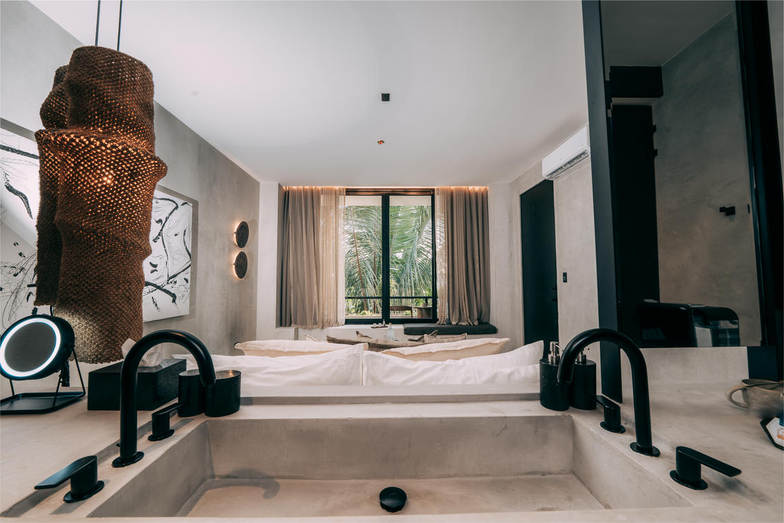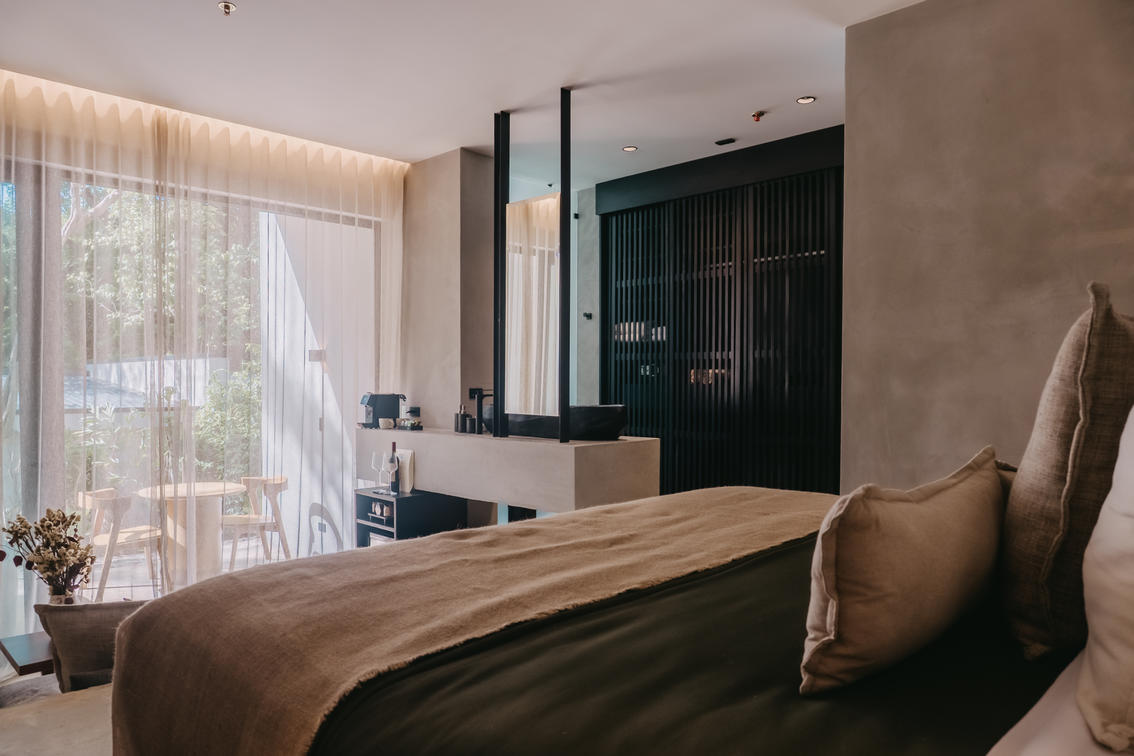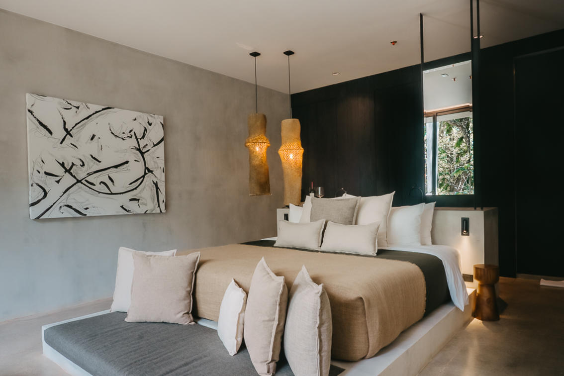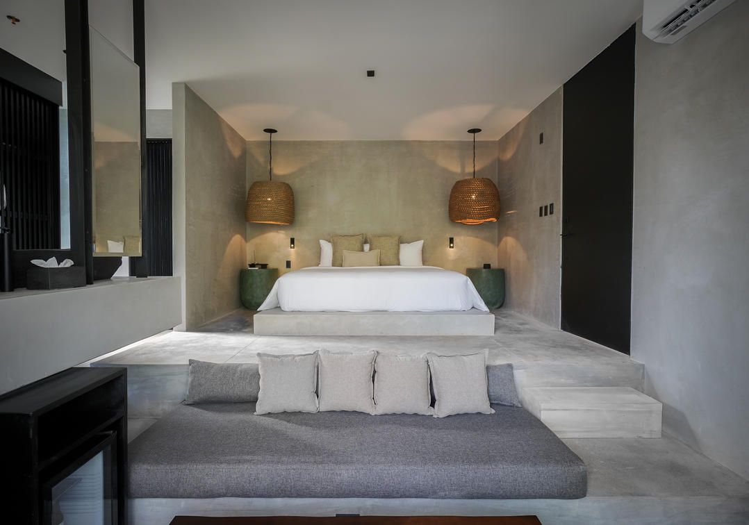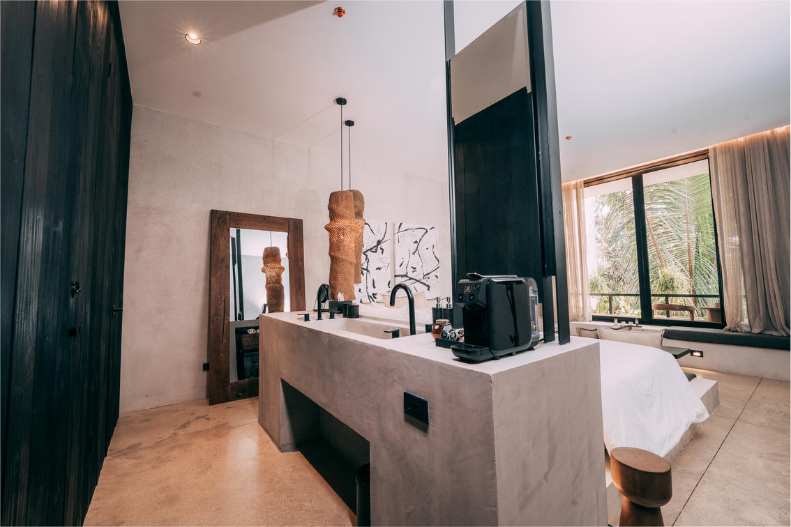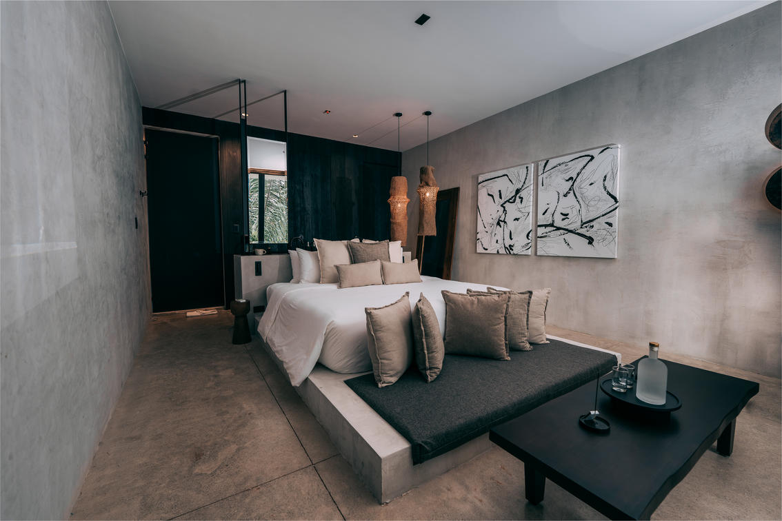 Perched above, this suite offers a private balcony that extends into the jungle’s canopy. Here, amidst the treetops, find a lofty retreat for inspiration and reflection, where the natural beauty invites contemplation.