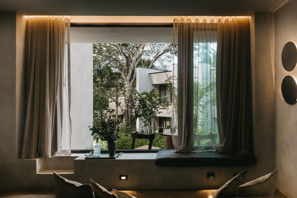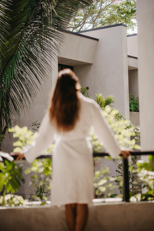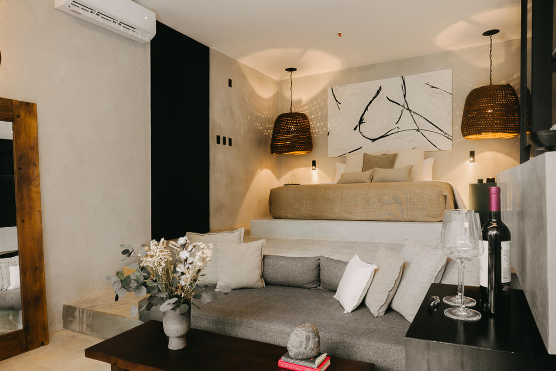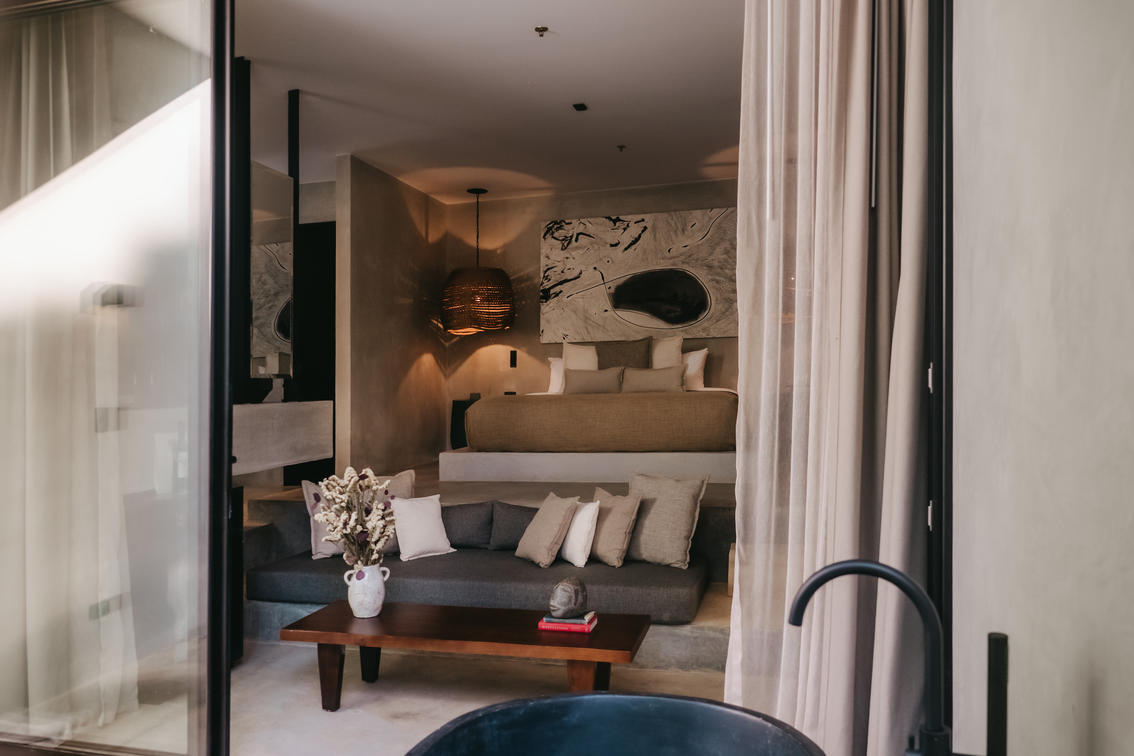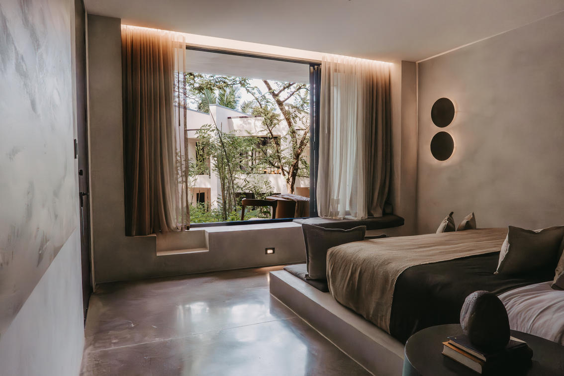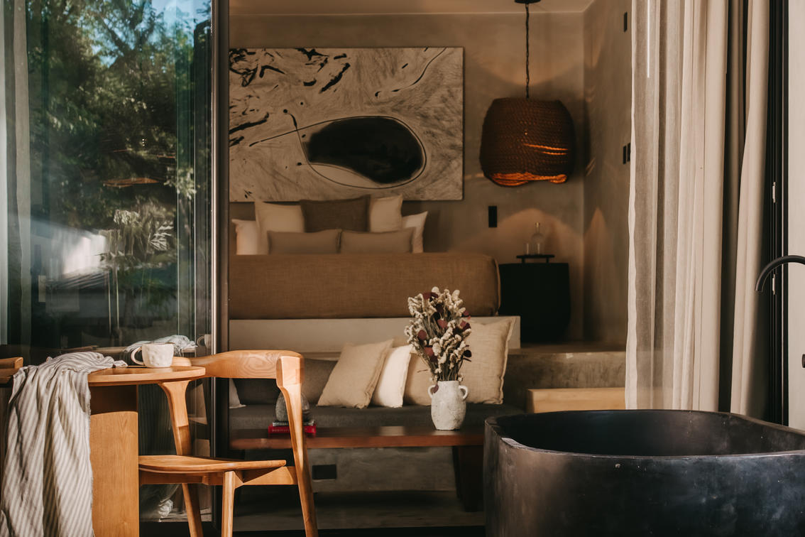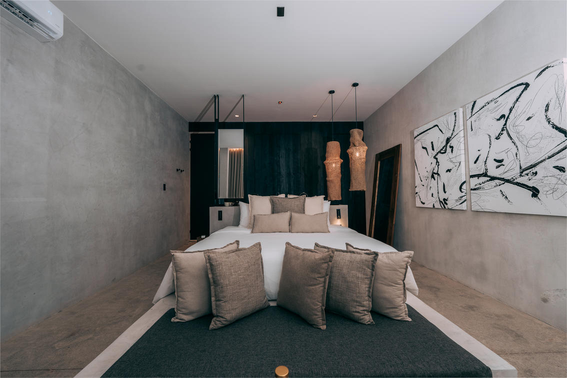 Perched above, this suite offers a private balcony that extends into the jungle’s canopy. Here, amidst the treetops, find a lofty retreat for inspiration and reflection, where the natural beauty invites contemplation.