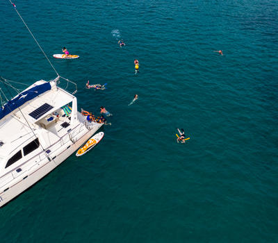 Charter a truly sumptuous boat for a trip along the coast. This spacious catamaran, which departs from the Flamingo Marina in the morning or afternoon, is ideal for larger groups (of up to 40). The Bali anchors at a pristine, secluded beach reachable only by boat. There, guests can snorkel with a guide, kayak, swim, or just relax on board. Snacks and drinks (open bar) are included. For the afternoon sail, watch the sunset on the way back.