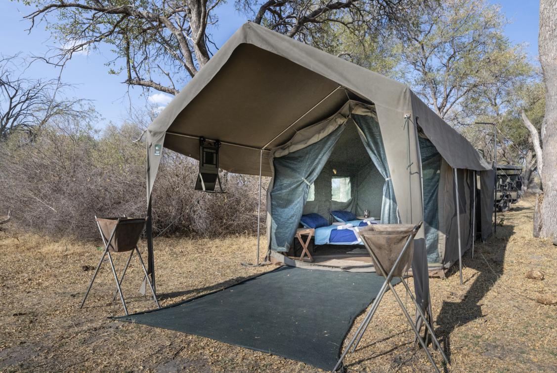 Accommodations at the Savuti Luxury Mobile Safari Camp are thoughtfully designed to offer a seamless blend of wilderness immersion and refined comfort. Guests are housed in spacious mini-Meru style tents, each carefully positioned to offer a sense of privacy while remaining close to nature. The tents are fitted with en-suite bathroom facilities, including a private bucket shower under the open skies and a flushing or eco-friendly chemical toilet, ensuring convenience without compromising the authenticity of the mobile safari experience.