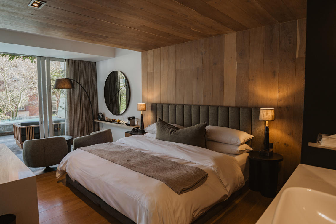 The very definition of compact luxury. Open plan bedroom and bathroom with superb mountain views with no balcony.