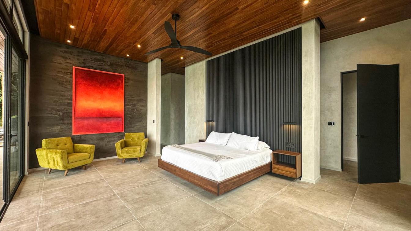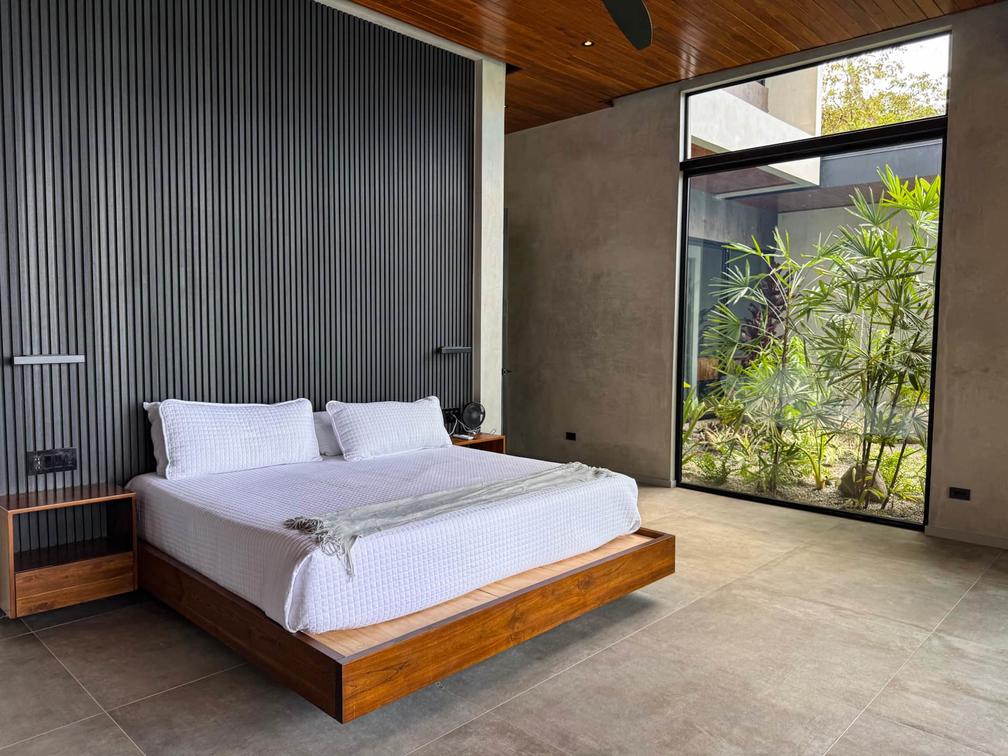 Details: Located on the main floor, this serene master suite features luxurious bedding, elegant finishes, A/C, and large windows that invite natural light and jungle views. A tranquil retreat for rest and relaxation.