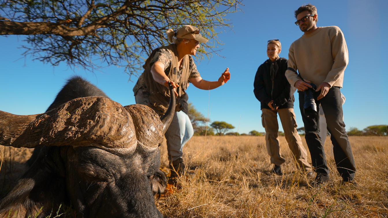 Join our exclusive Buffalo Darting Safari, where we safely tranquilize a Cape buffalo to remove outdated ear tags, symbols of their past in trade, helping us return them fully to the wild. As part of the safari, you'll have the opportunity to observe the careful coordination between the helicopter team and the veterinary staff, ensuring the safety and health of each majestic animal.