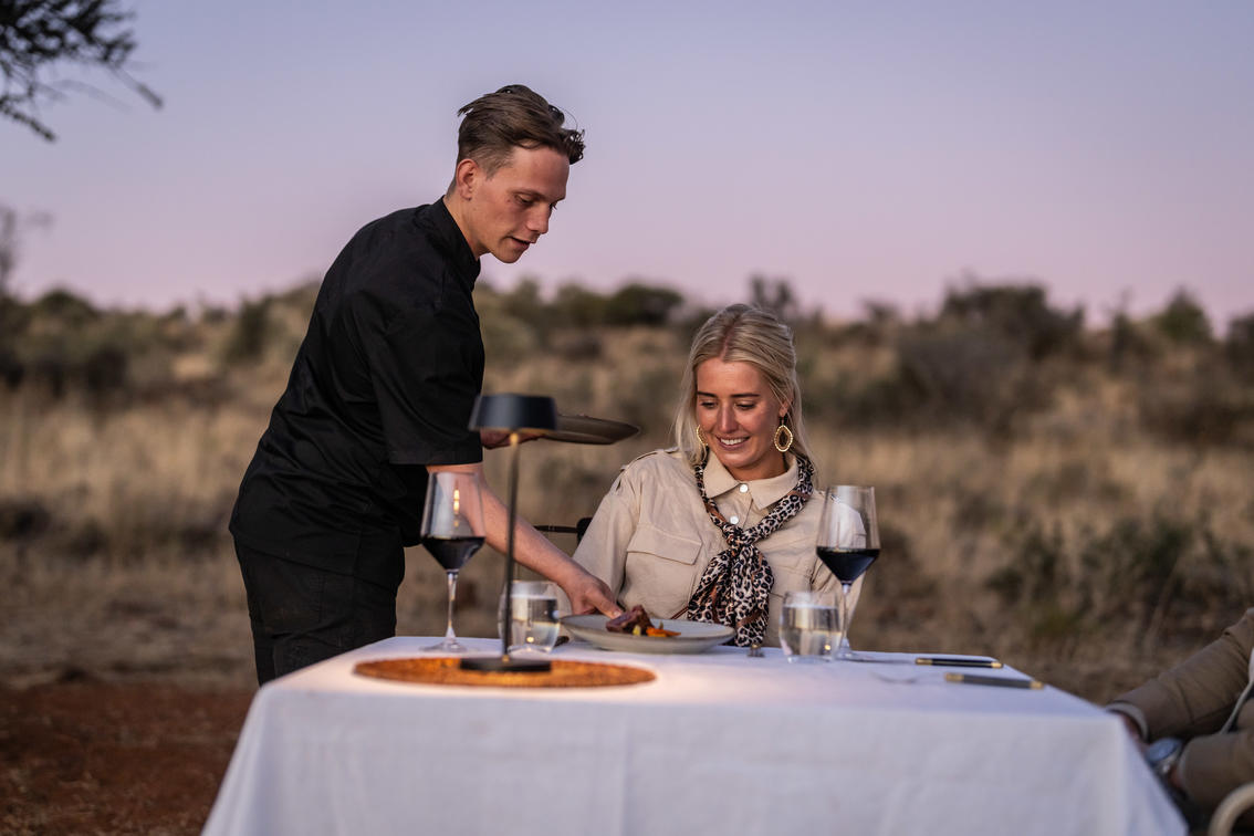 On one special evening, dinner moves beyond the lodge into the heart of the bush. A fire-lit table, seasonal dishes, and rare South African vintages await beneath a cathedral of stars. Intimate, atmospheric, and unforgettable. Reserved for guests staying a minimum of three nights.